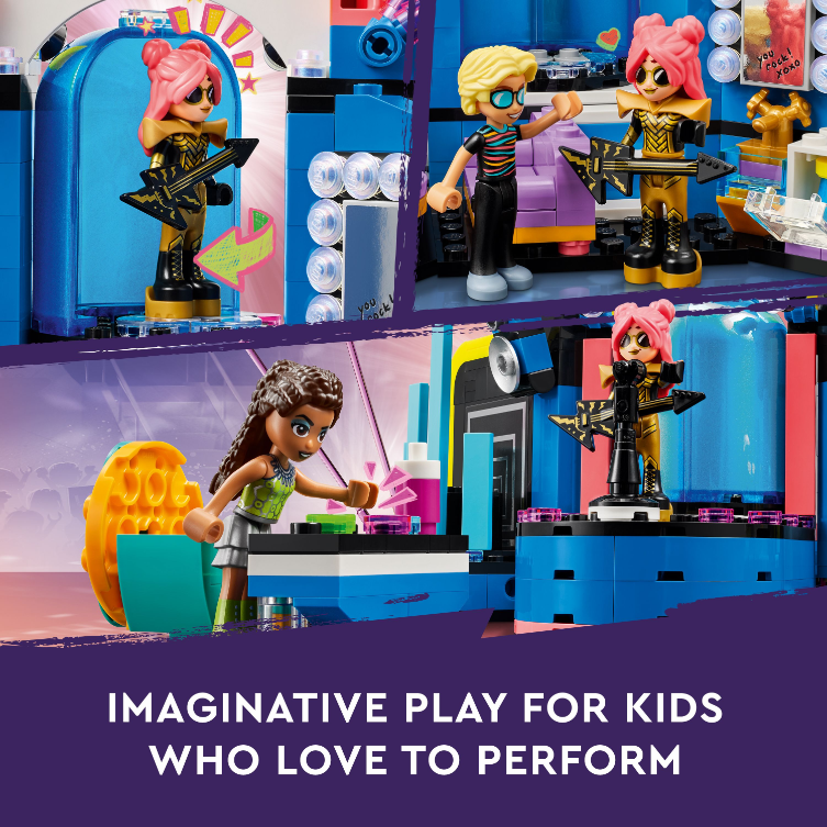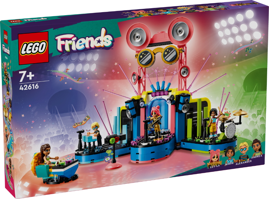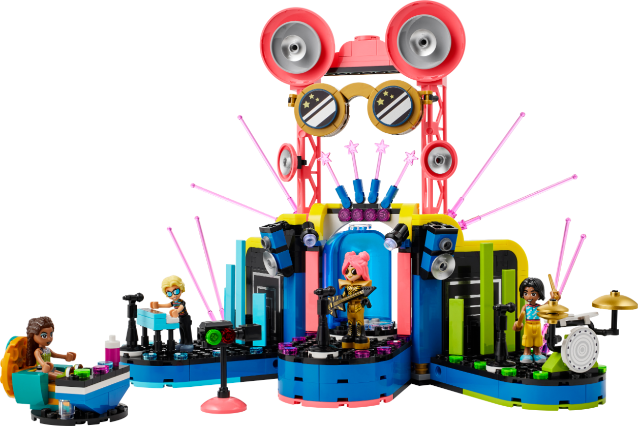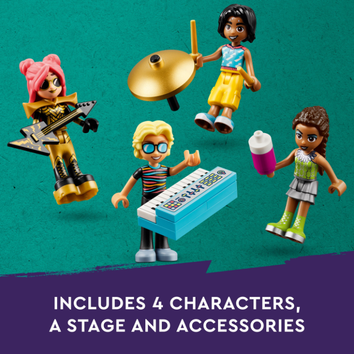 Put on a musical talent show – The LEGO® Friends Heartlake City Music Talent Show toy includes 4 characters, a stage and lots of accessories, making it a fun gift set for girls, boys and kids aged 7+