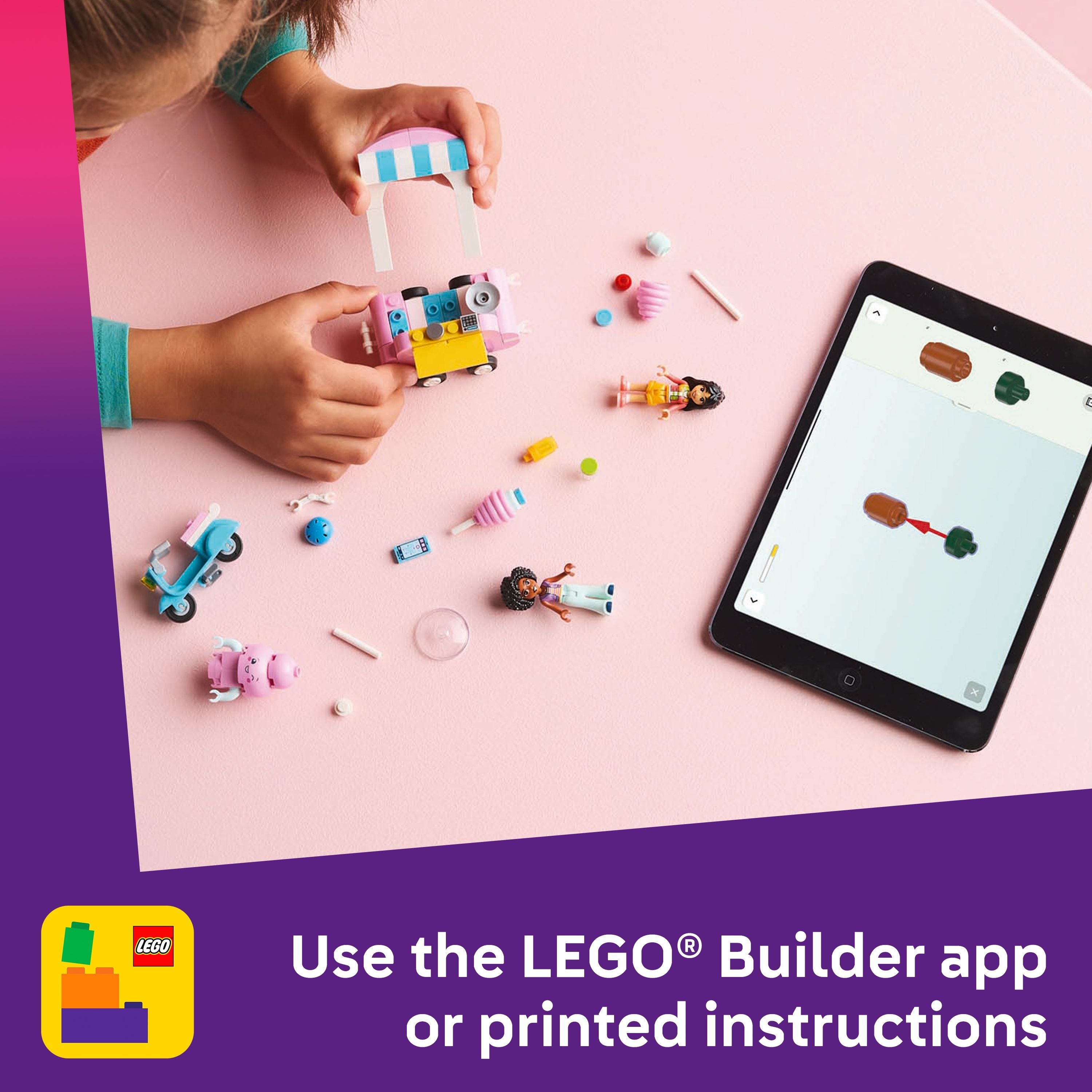 Pretend-play building kit – This LEGO® Friends Cotton Candy Stand and Scooter set for girls, boys and young builders aged 6 and up comes with 2 minidolls, a food cart and a scooter with a kickstand