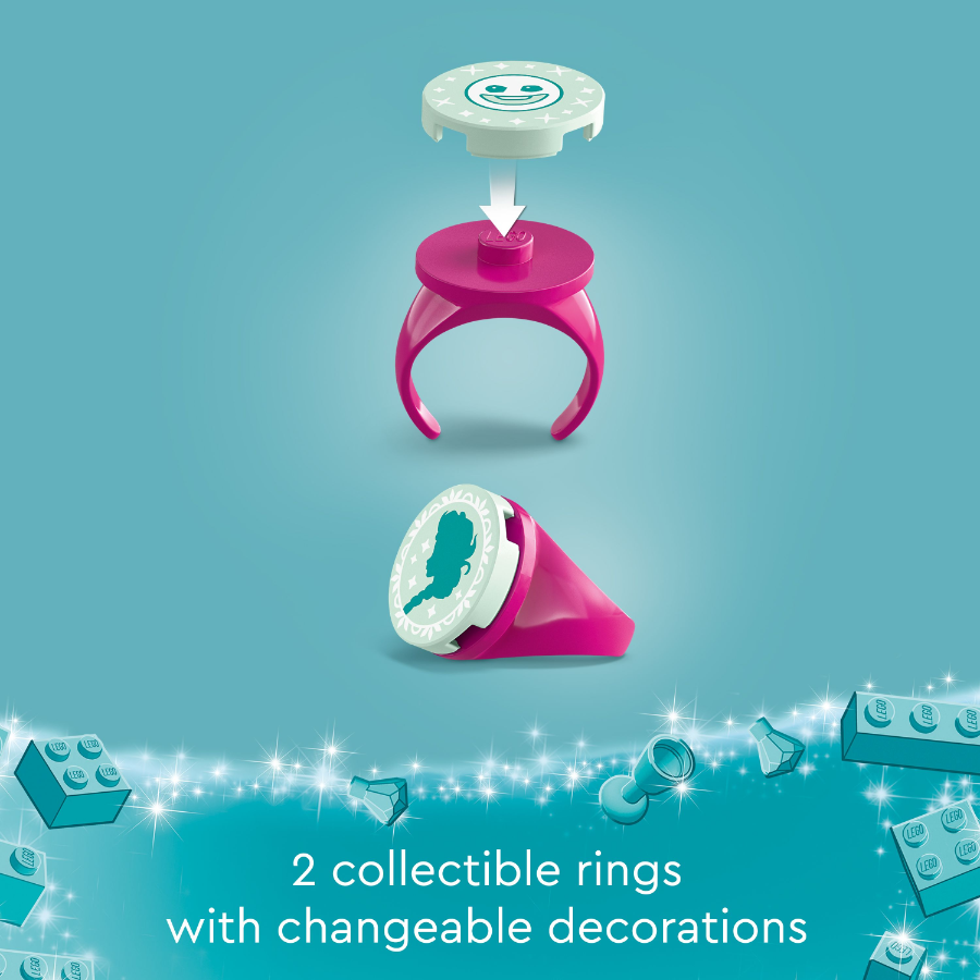 Help Elsa hand out ice-cream cones and ice pops with this delightful LEGO® ǀ Disney building set. It’s inspired by the Disney hit Frozen, and you can join Elsa as she shares cool treats with friends. What a pretty snow globe! Share your love of Elsa and the Snowgie with 2 collectible rings, each with a decoration that can be changed out at any time. Wait, where did that Snowgie come from?