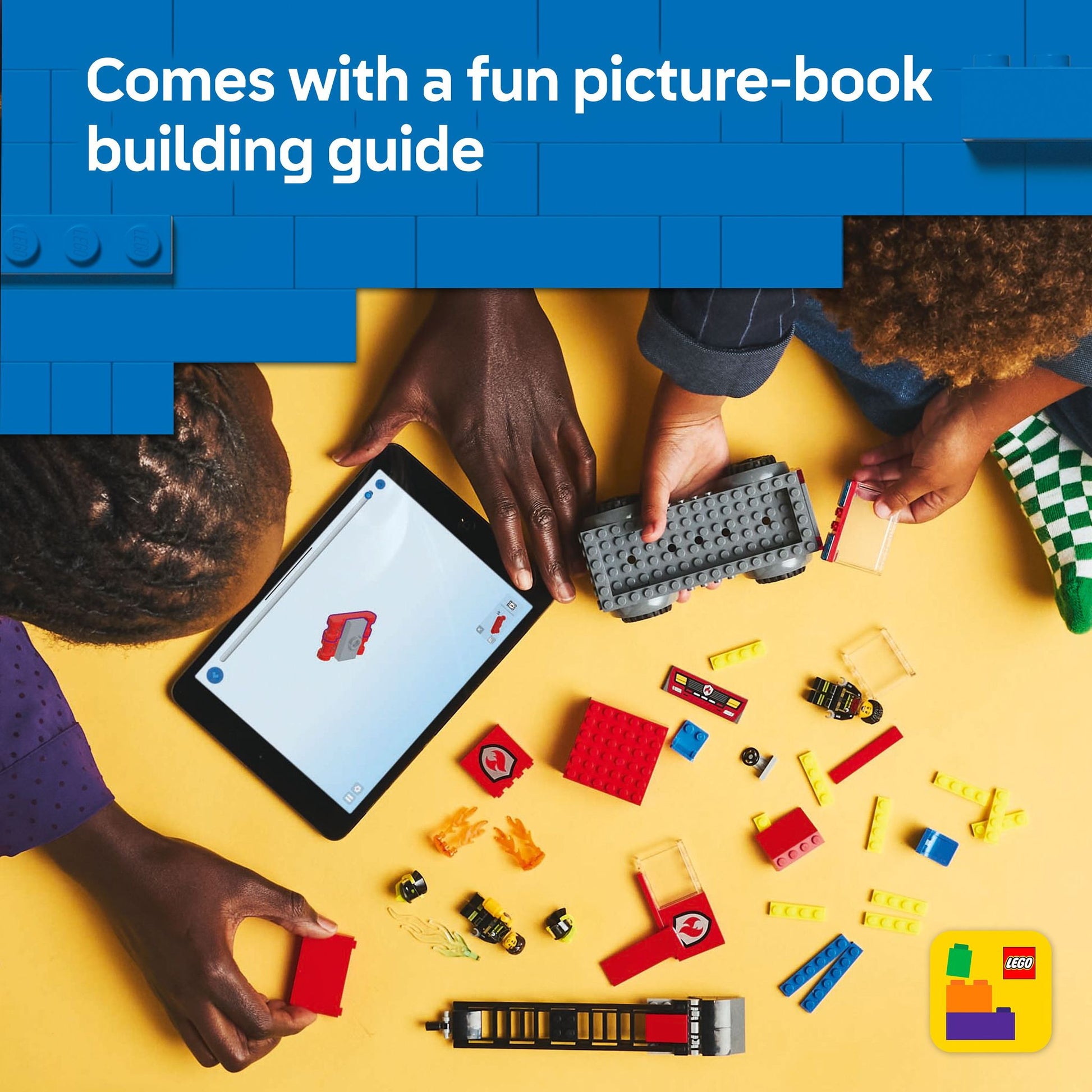 Includes a digital guide – This firefighter set includes a LEGO® Starter Brick element, a simple pictorial building guide and 3D digital guidance in the LEGO Builder app