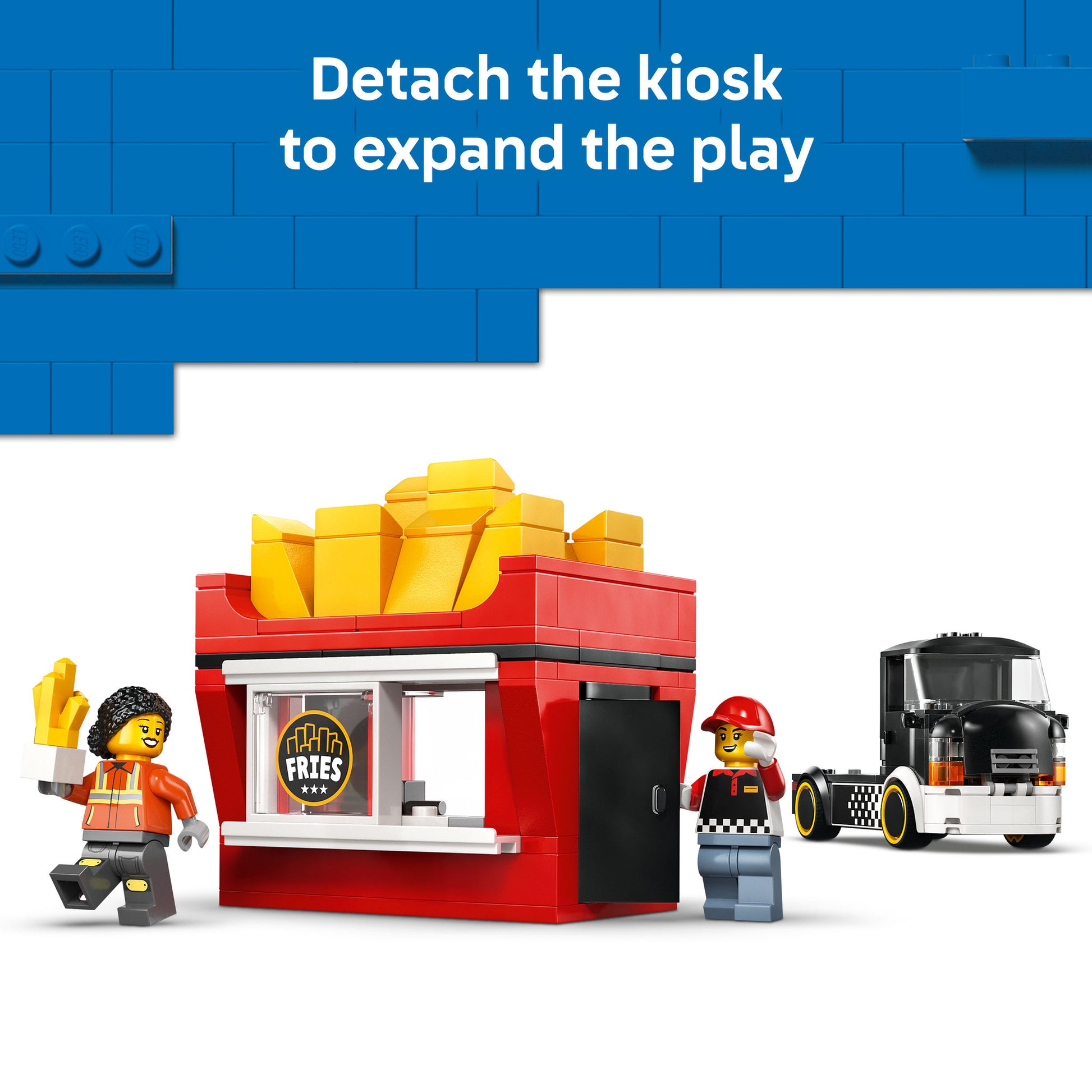 WHAT'S IN THE BOX? – Includes everything kids need to build the LEGO® City fries truck toy, plus vendor and customer minifigures and accessories