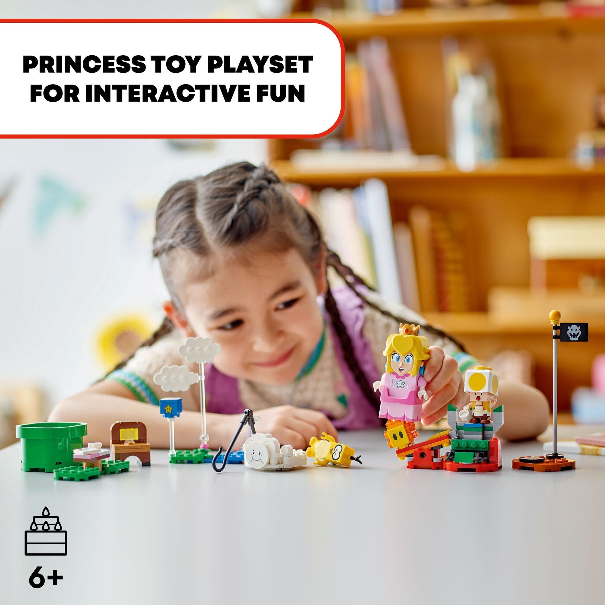 Princess toy playset for fun adventures with Interactive LEGO® Peach™ – Join LEGO Peach for a picnic tea party and help her fly on Lakitu’s cloud to rescue the Yellow Toad