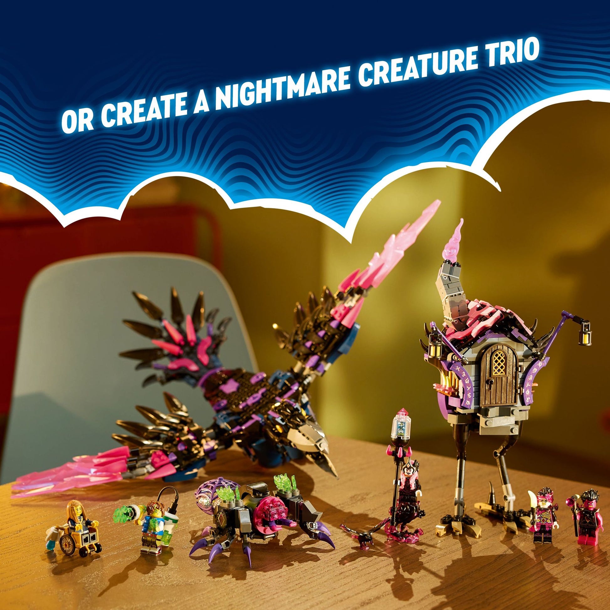 5 LEGO® minifigures – Dream chasers Mateo and Astrid, the villainous Never Witch, and evil doppelgangers Dizzy and Dogan bring the set to life