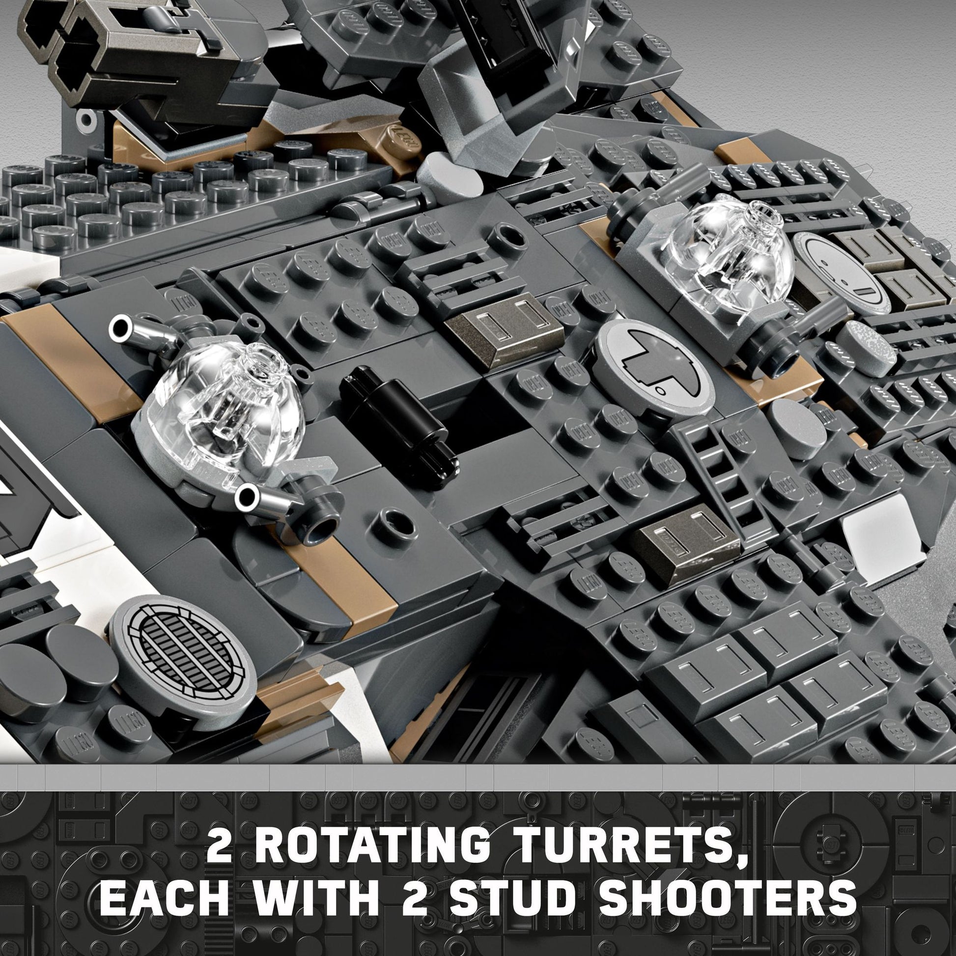 Authentic features – A cockpit, compartment with seats for 4 LEGO® minifigures, rotating engines for landing/takeoff or flight, 2 stud shooters and 2 rotating turrets, each with 2 stud shooters
