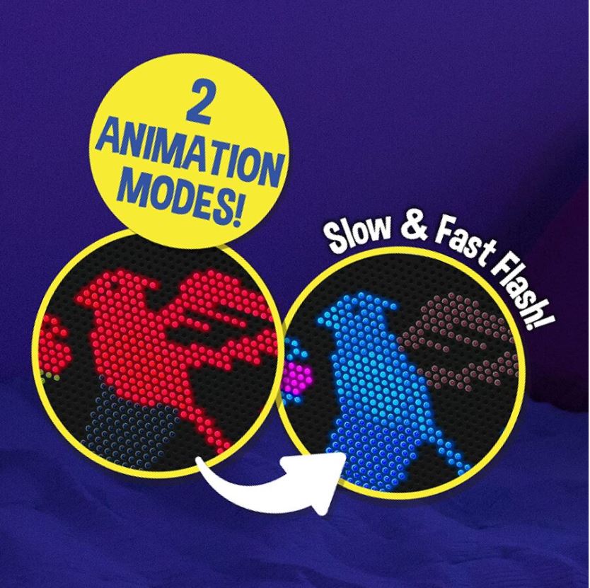 5 HD Light Modes. Light up your art with 3 color changing patterns (fade, flash, white light). Or, try the 2 animations (slow and fast flash)!