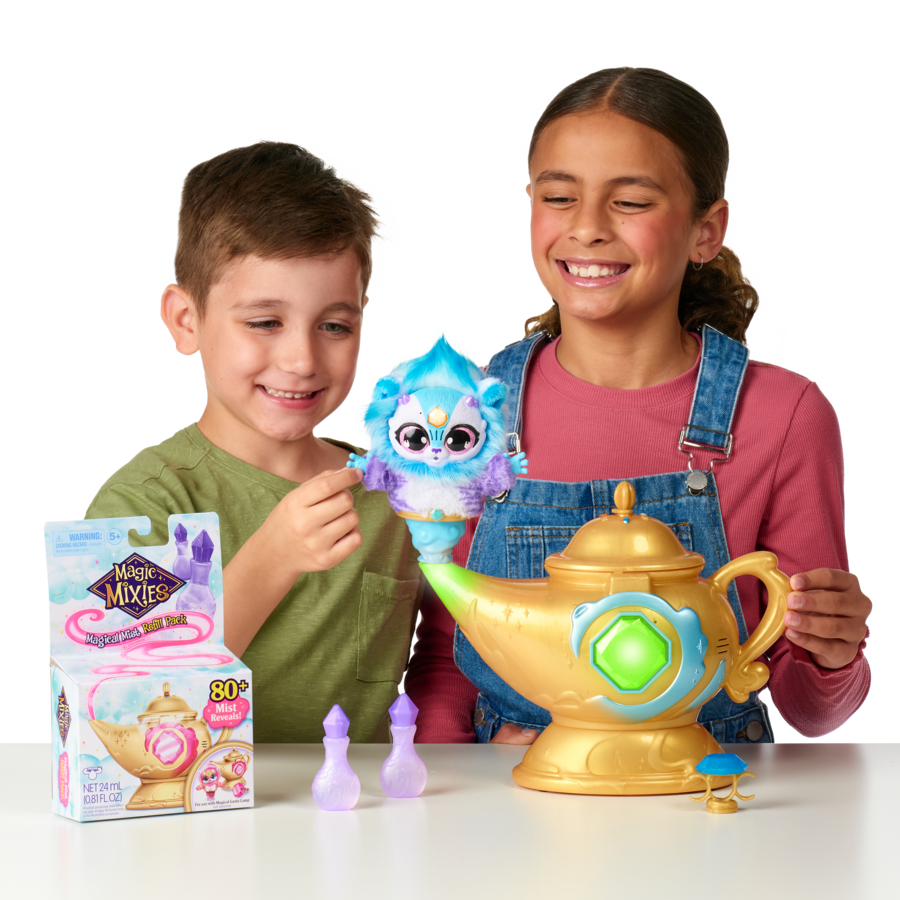 Real magic returns with the Magic Mixies Magic Genie Lamp. Who will you magically create when you perform the magic steps and unlock the secrets within? The Magic Mixies Magical Mist Refill Pack has enough magic mist to create over 80 misting moments! You can now make sure that there is always more enchantment in store!