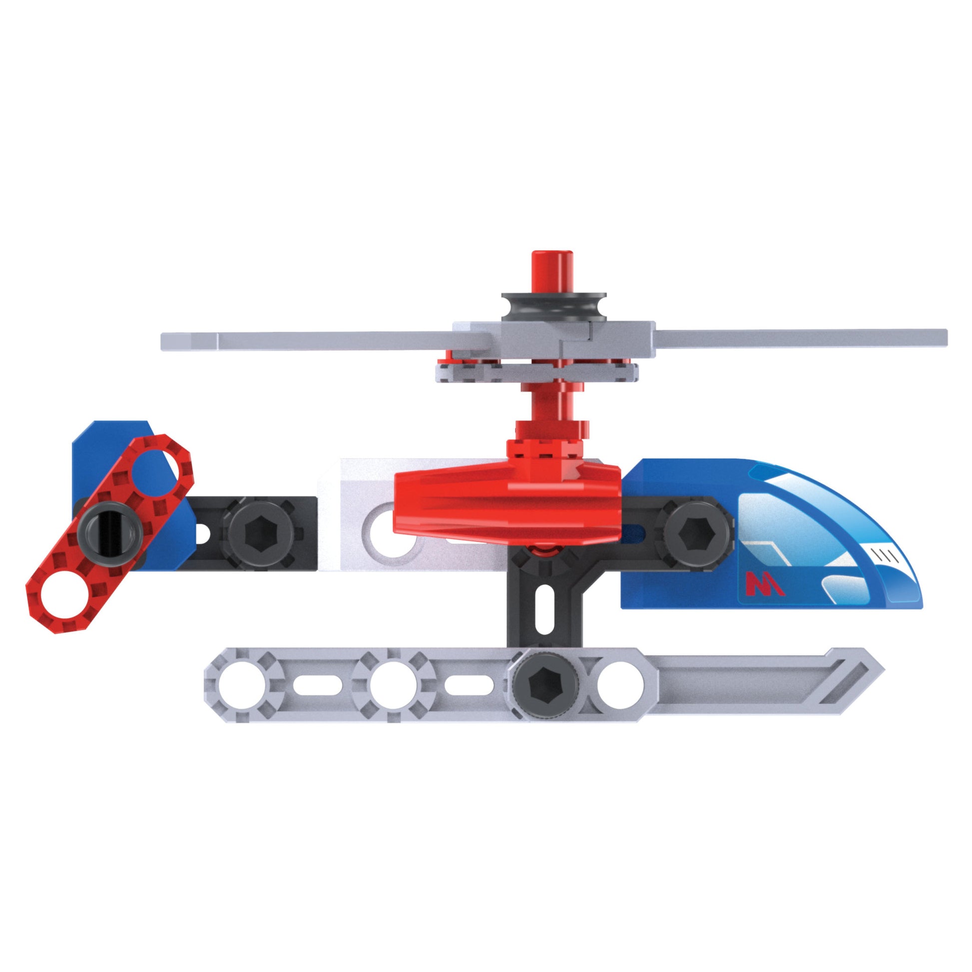 Build, create, and race with the Meccano Junior Helicopter! This STEAM kit includes over 45 parts, tools, and stickers to help kids build their very own race car.