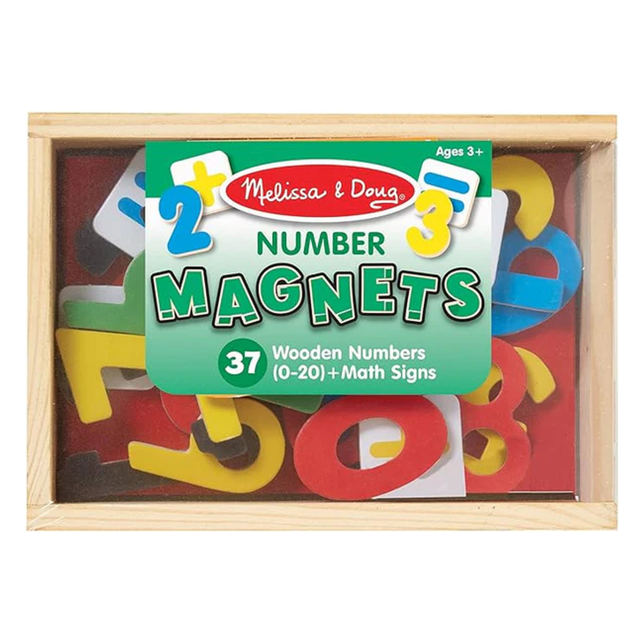 Enough numerals to count from zero through twenty AND five math signs in a convenient wooden case. 37 colorful magnetic pieces can help children learn their numbers and solve basic math problems.