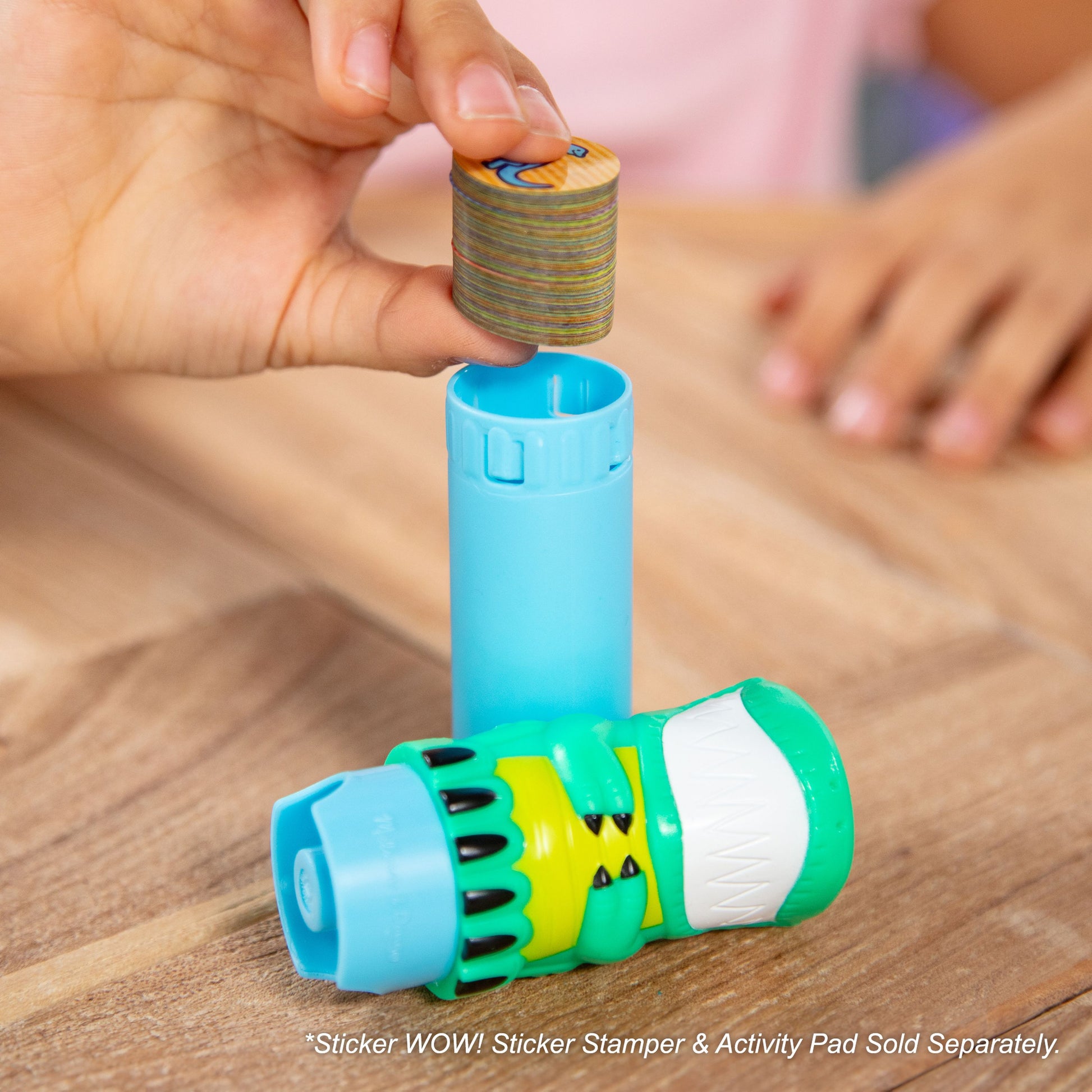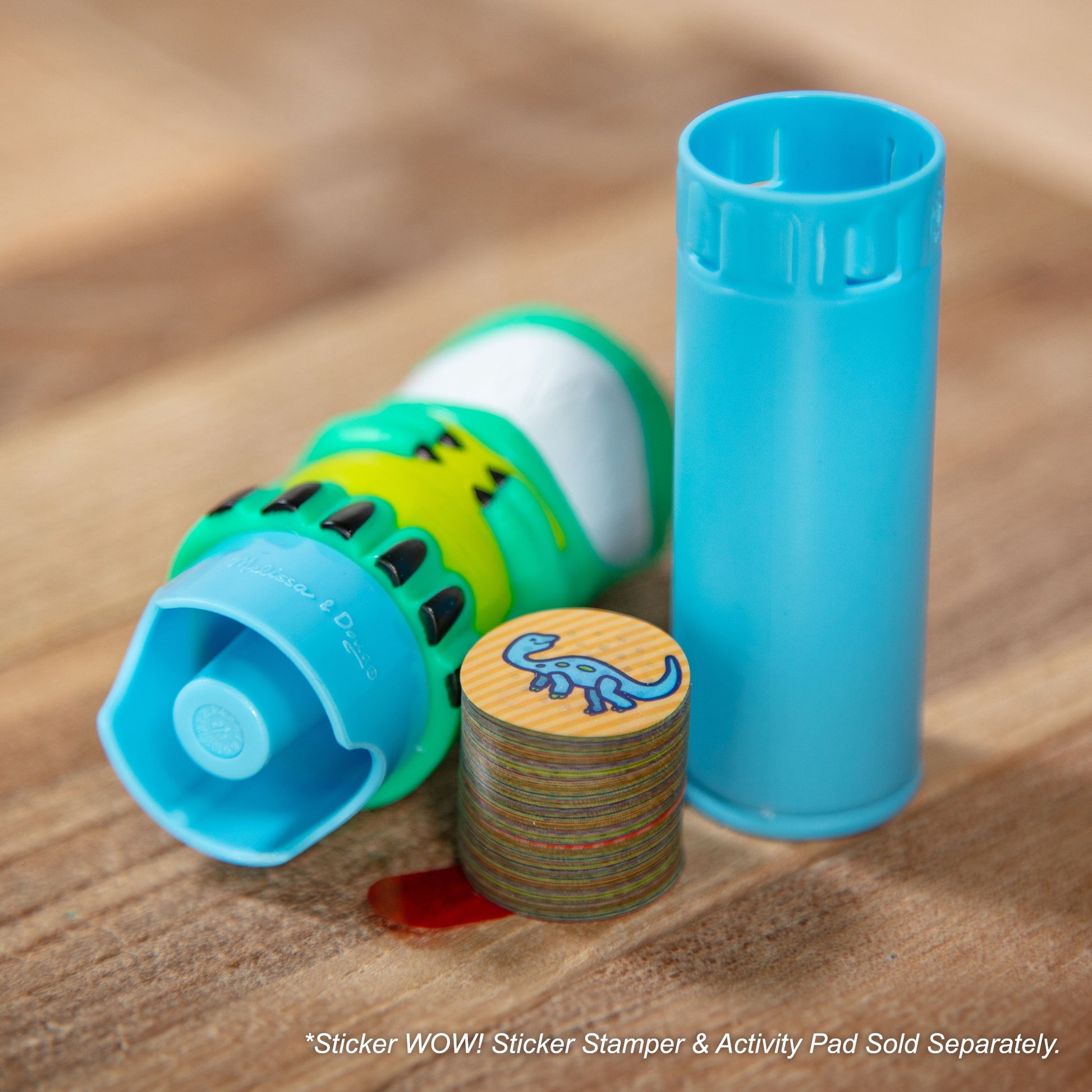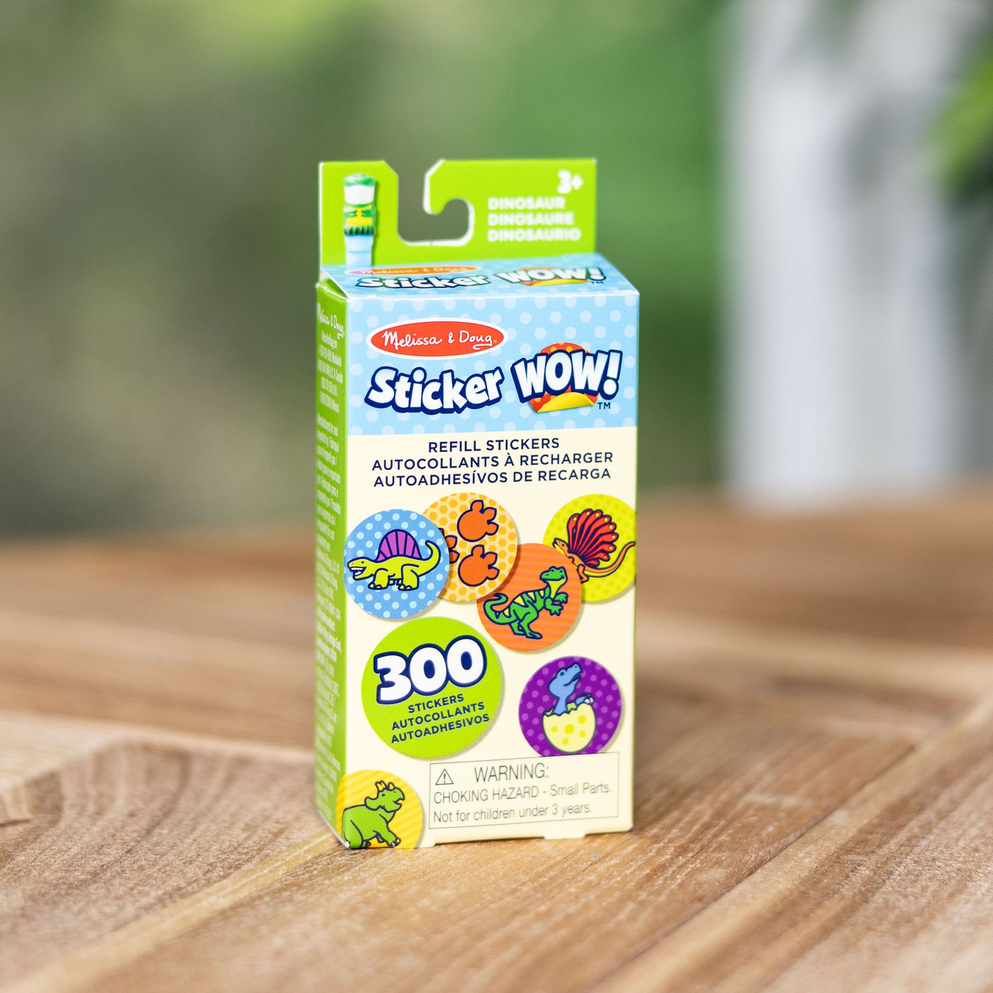 Refill the Melissa & Doug Sticker WOW!® Olive the Dinosaur sticker stamper (not included) with 300 dinosaur and prehistoric-themed refill stickers, and stamp away, anywhere, anytime.