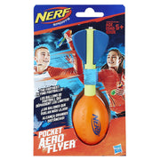 The Nerf Sports Pocket Aero Flyer ball goes the distance! This small foam football has a tail with 3 fins to help it fly farther when thrown. Practice passing or start a pick-up game; tuck it in a pocket or backpack to bring it everywhere and get a game going anytime! Nerf and all related properties are trademarks of Hasbro.