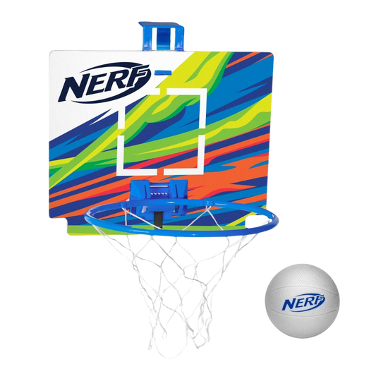 Experience the thrill of basketball indoors with the NERF Nerfoop Mini Over the Door Basketball Hoop Set!