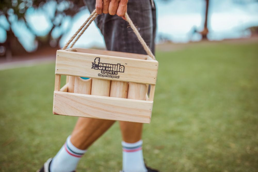 Number Toss is a team sport perfect for your next picnic with friends or family. So gather your comrades and throw the log to earn points in this classic game of skill. This set from Formula Sports includes 12 wooden pins, a quality throwing log to knock them down as well as a hardwearing crate to store and transport. It's the ideal way to spend an afternoon, entertain the kids by the beachside or add excitement to your next backyard gathering.