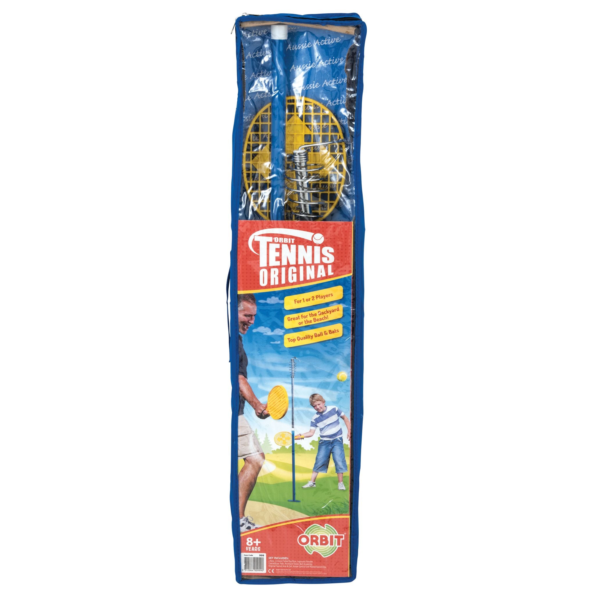Fast 2 player bat and tethered ball game for the whole family. Orbit Tennis includes "in ground" powder coated base pole and chrome plated top pole. 2 styles of game play. Swivel rotates freely for fast exciting play.