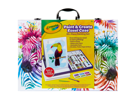 The set includes a durable and portable travel art case that makes it easier than ever to keep painting supplies protected & organized while on-the-go! Try out new painting techniques with included tools like Crayola Resist Crayons or Sketch Pencils.
