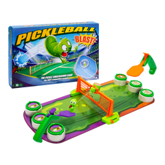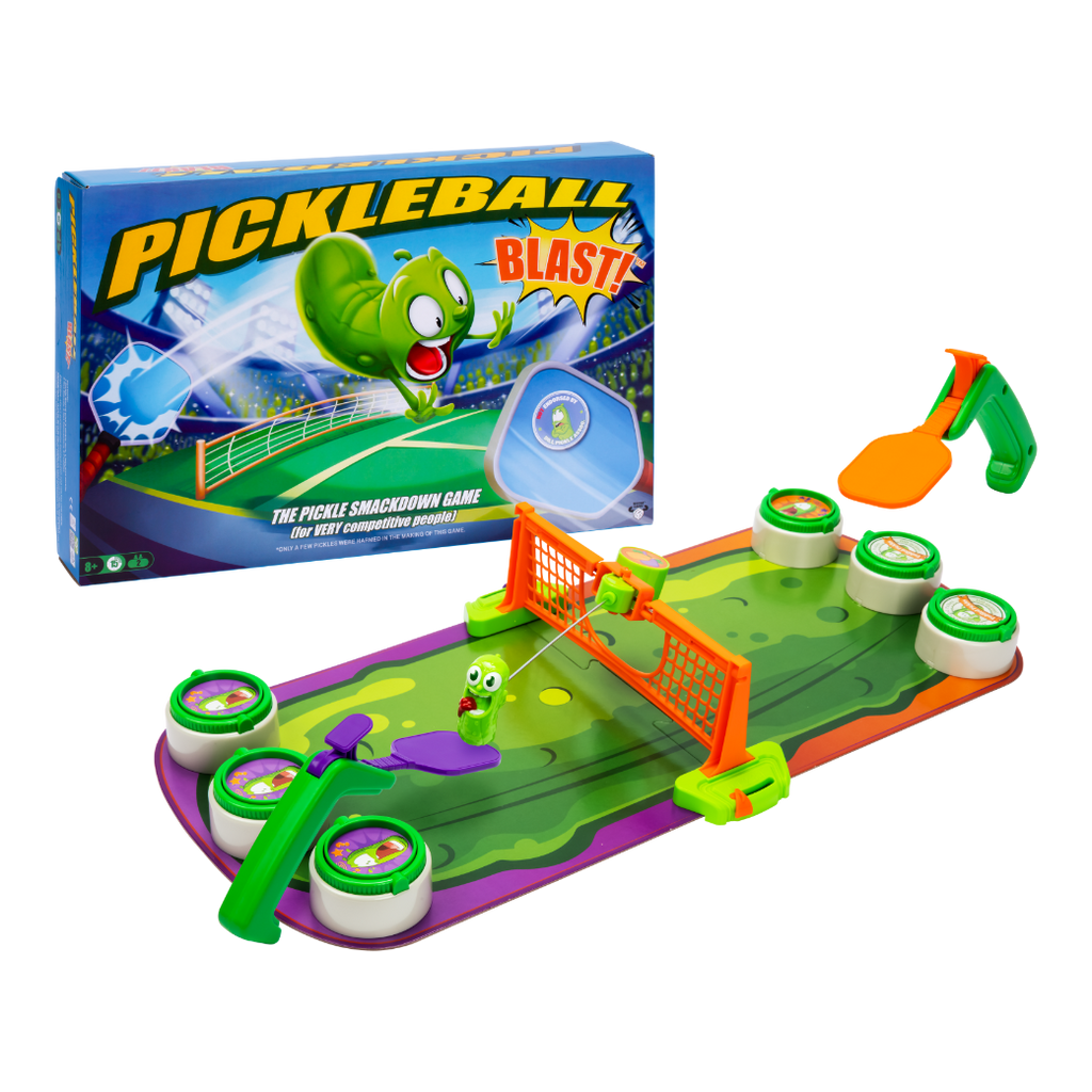 The hottest paddle sport around has been shrunk down and been given a whole new shot of fun! Introducing Pickleball Blast - The Pickleball Smackdown Game! (for VERY competitive people). Now you, your family and friends can play an action pack fun-filled game of Pickleball inside! We've miniaturized the court and added some crazy features to make this version of Pickleball the most fun you'll ever play! Get ready for some Smackdown silliness!