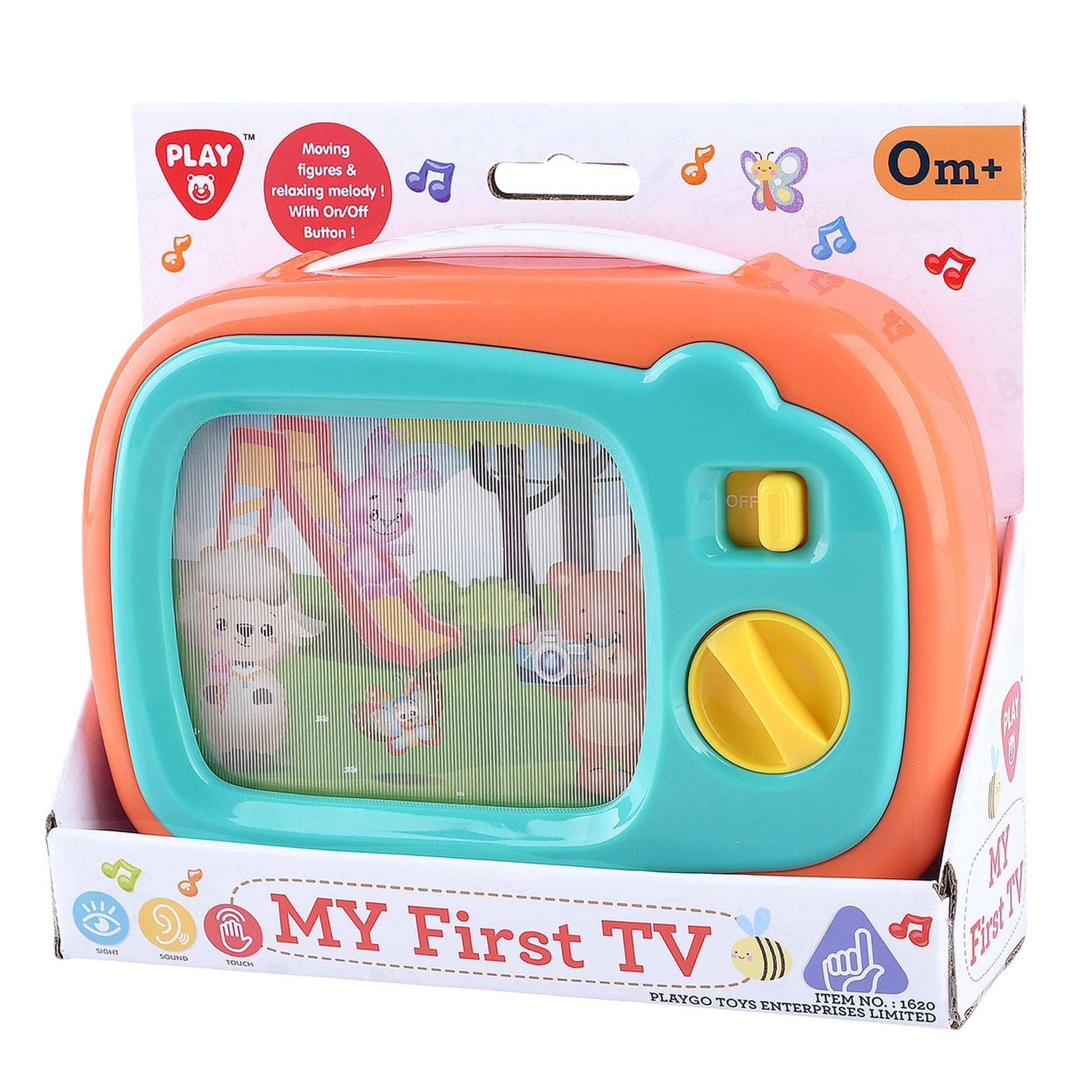My First TV by Playgo will entertain your little one with its cute moving picture and soothing lullaby music. The figures move as they travel across the screen, with lots of bright colours and numbers. Turn the dial and the picture will move and music will play. There is also an on and off switch. Batteries not requried, 0m+.
