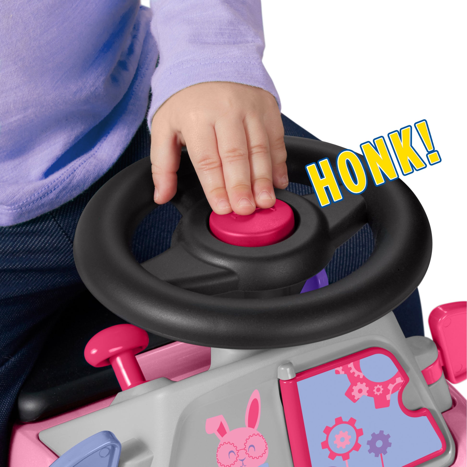 The Busy Buggy doubles as a baby push walker, allowing children to build confidence and balance as they learn to walk. When your child is ready, he or she can sit and scoot around on their push car. From walking to riding, the Busy Buggy will be a family favourite for years to come.