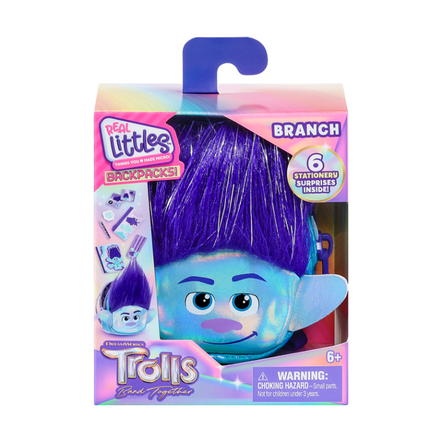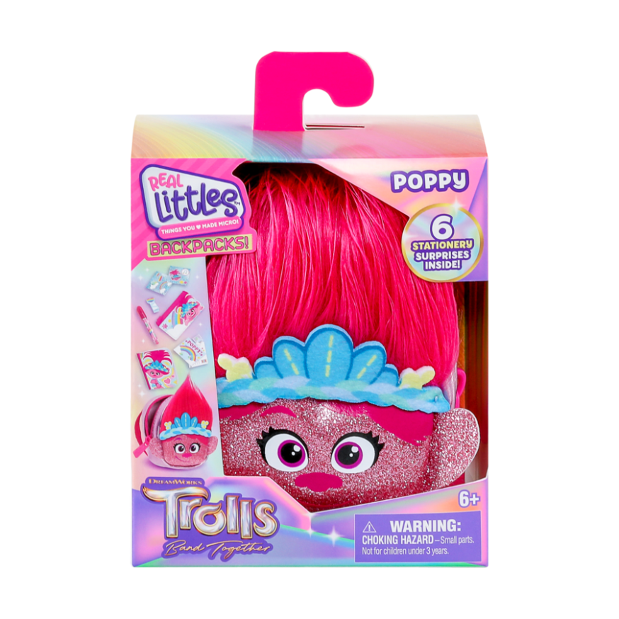 Real Littles Trolls - Band Together Backpacks come in four different themes, each featuring one of the beloved characters from the Trolls - Band Together series. Your child's Trolls favorites are here including Poppy, Branch, Viva and Satin & Chenille! Each of the Real Littles Backpacks is designed to delight Trolls fans of all ages, with each Backpack featuring a unique design and mini stationery surprises to match!