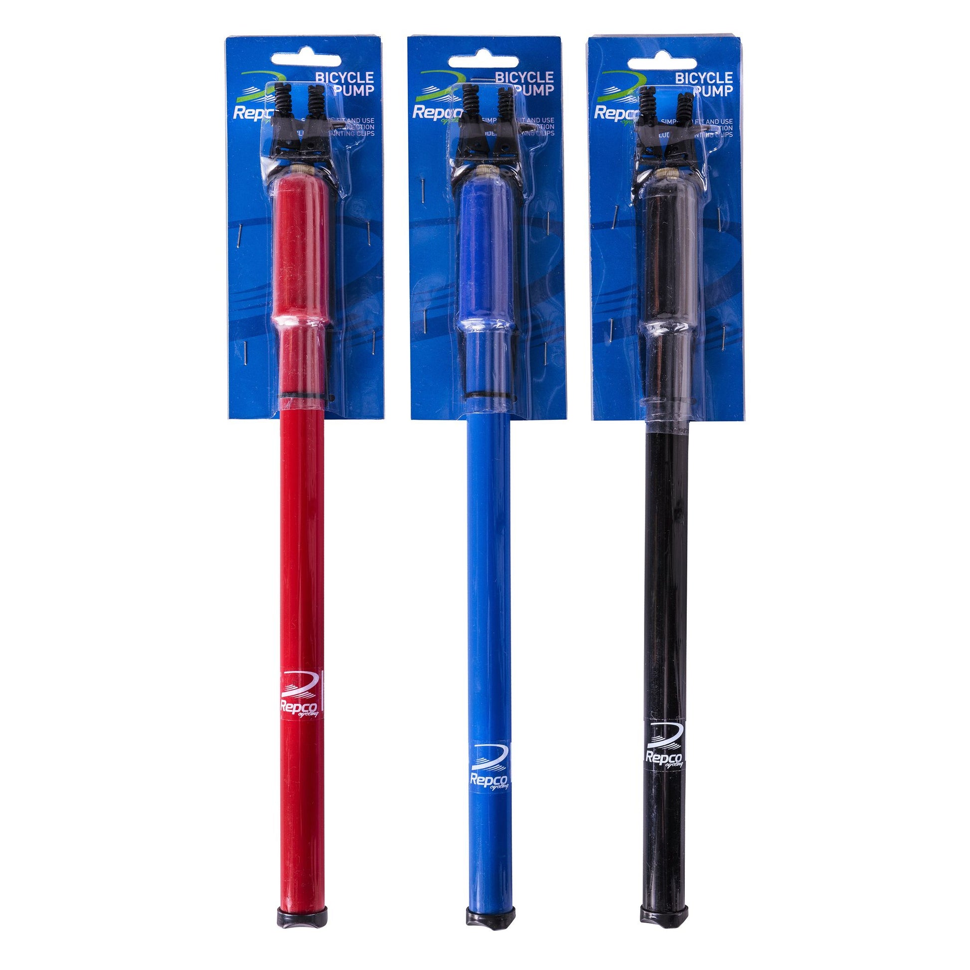 Repco Plastic Pump features a connector hose inside the handle, fixing screws at the end of the pump and centre pump holders on the frame tube also perfect for emergencies.