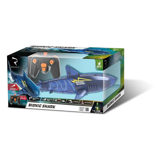 BIONIC SHARK is a new breed of water toy that is super easy to operate and loads of fun. BIONIC SHARK has dual motor drive system and bionic spine that creates a realistic swimming motion that looks like a real shark! BIONIC SHARK also features 2 speeds (slower speed for bathtub setting) and an “auto-pilot mode” that you can use to make the shark swim straight or a figure 8 just with a press of a button! not intended for use in salt water.