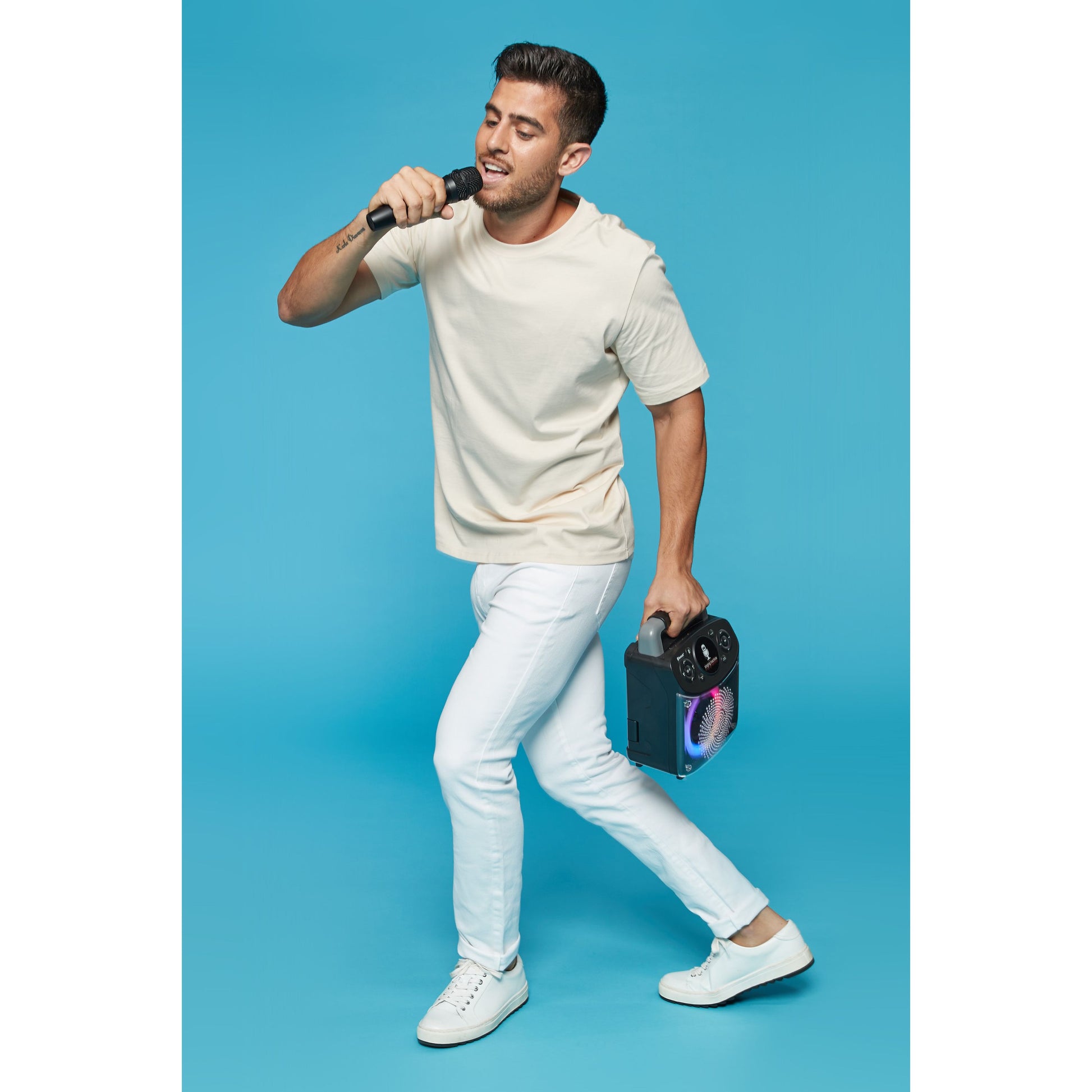 Enjoy a light show that synchronizes with the beat of the music. Connect your Bluetooth device and sing along to your favourite karaoke songs.