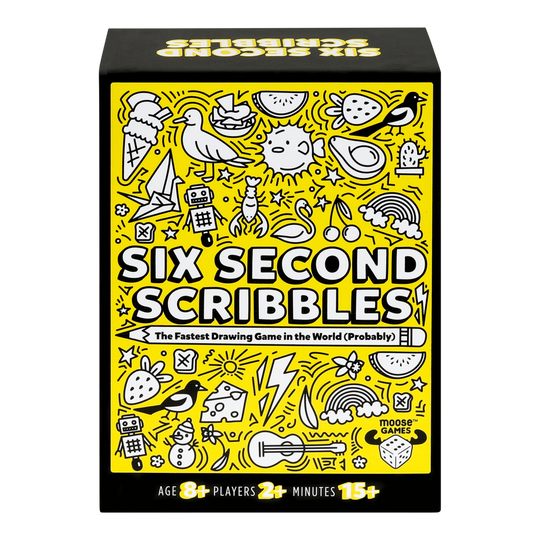 Six Second Scribbles is a game where you "Draw, Decipher and Score"! Everyone plays at once in this fast-paced party game! You all have ONE minute to draw up to TEN things from your card. But not every doodle will do! To win points, your friends and family must be able to guess WHAT you drew. Whether you fancy yourself as an artist or can’t draw at all, Six Second Scribbles guarantees laughter, frenzy, and some very questionable art!