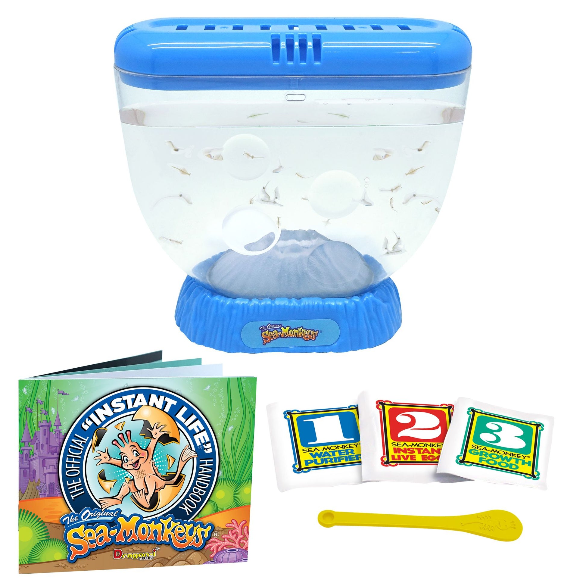 Includes your under the water Ocean Volcano aquarium, #1 Water Purifier, #2 Instant Live Eggs, #3 Growth Food, Feeding Spoon and 16 Page Hand Book.