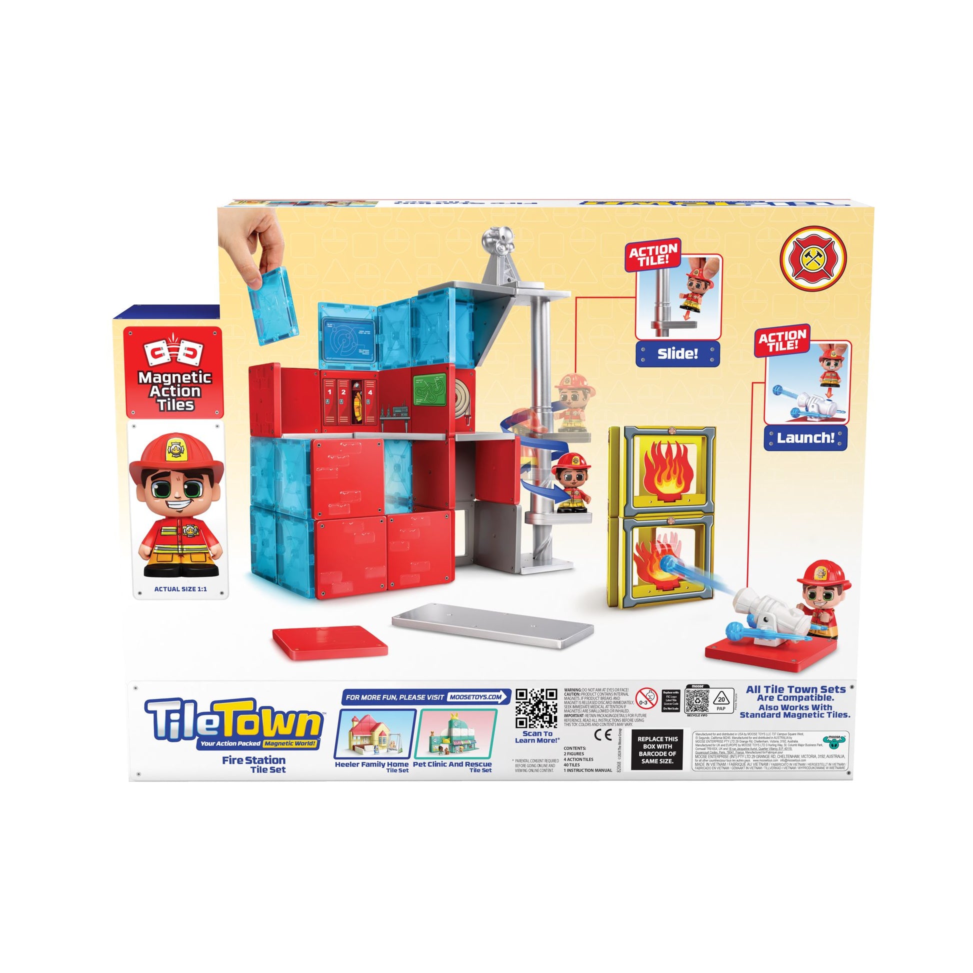 Join the Tile Town Fire Brigade and build a Fire House full of action and excitement. This 46-piece construction set includes 2 firefighter action figures. They jump into action as they activate the Action Tiles putting out fires and sliding down the Fireman’s pole to save the day!