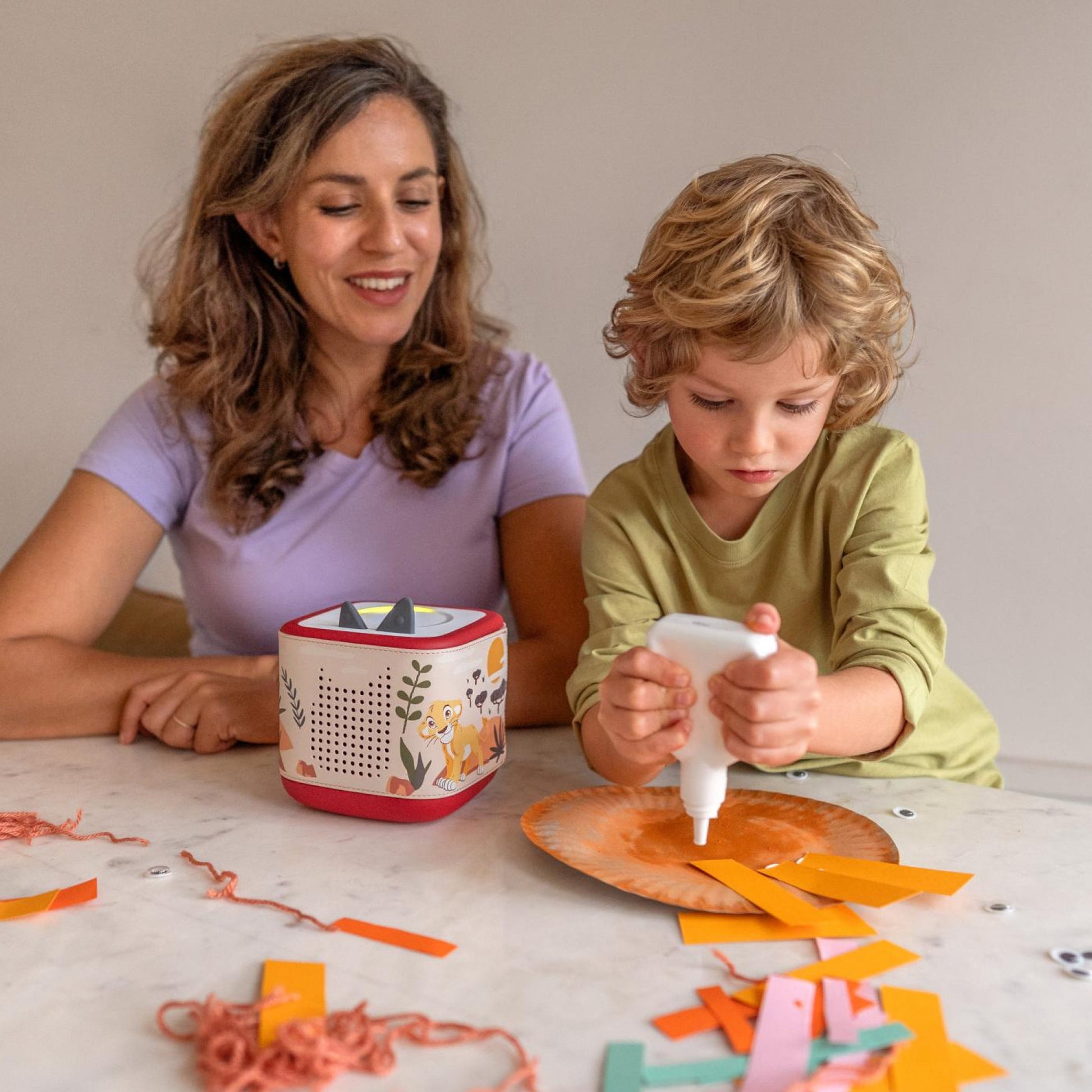 Hakuna matata! This Disney Lion King Toniebox 2 Sleeve brings a colourful new look to the Toniebox 2 staying snug and keeping sound clear through every adventure.Bring the Pride Lands to their playtime with the Disney Lion King Toniebox 2 Sleeve! With fun, colourful designs, it’s easy for kids to personalise their Toniebox and make it their own. They can mix, match, and switch things up whenever they like. The sleeve slips on easily, fits snugly with speaker openings to keep sound clear, and stays in place through everyday play. Whether they love bold patterns or favourite characters, there’s a sleeve that’s just right for them.FEATURES & BENEFITSFits snugly on the Toniebox 2 - Designed like a second skin—easy to slip on, with a secure fit that stays in place.Speaker holes for clear sound - Thoughtfully placed cut-outs ensure their Toniebox 2 still sounds as magical as ever.Bright and beautiful designs - High-quality prints in vibrant colors turn every Toniebox 2 into a mini masterpiece.Charming stitched details - Surrounding stitches add a decorative finish and high-quality look.Certified safe for kids 1+ - Made with child-safe materials and suitable for little hands.DETAILSOnly compatible with Toniebox 2Toniebox 2 sold separately Packaging Content: 1 SleeveMaterial: vegan leather + siliconeSize: 0.475*0.001*0.1mMade in VietnamAge Range: 1+