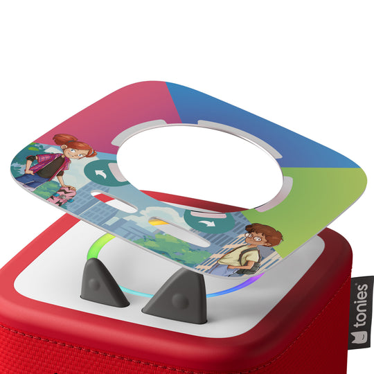 | Zoe Braverman and her friend Sam Sanchez are on a mission to rescue their neighbor's missing puppy, Poochie, and your kid gets to make all the decisions to help. In this game designed for ages 7+, kids follow the clues and dodge mishaps to make it through the Big City. Get ready for a story with over 12 twists and turning points and 4 alternate endings for hours of play time!Tonieplay offers safe, screen-free gaming with interactive games, quizzes, and adventures—no screens or ads. Designed for kids ages 3-9+, these experiences foster problem-solving, critical thinking, confidence, and self-belief. Kids can play solo or team up with family and friends for multiplayer fun and learning.The games improve focus, enhance listening skills, and boost hand-eye coordination. With every story and game, kids build confidence, make smart choices, and learn they can do big things, all while having a blast!How it works:Pick a Tonieplay gamePlace the Tonieplay disc on top of the Toniebox 2 and squeeze an ear to turn on.Put the Tonieplay Controller in the middle of the Light Ring.Press the “Play” button on the controller and get ready!Investigate the mystery and choose which clues you follow.Features & benefits:Interactive Play: Unlock a world of games, quizzes, challenges, and adventures with Tonieplay for Toniebox 2, all in a safe, screen-free environment with no ads.Immersive Storytelling: Dive into engaging, interactive stories where players can shape their own story, make choices, and build clever thinking through every twist and turn!Perfect for Solo or Group Play – Go solo or team up for awesome adventures with friends and familyToniebox 2 and Tonieplay Controller required to play *sold separatelyCopyright:© & ® 2025 tonies GMBH tonies.comRun time: 50 mins play through, 120 minutes minutes of total game play Details:Contains (1) Tonieplay disc and manualToniebox 2 and Tonieplay Controller required to play *sold separatelyMade in ChinaAge Range: 7+ ⚠ WARNING. This toy produces flashes that may trigger epilepsy in sensitised individuals. |