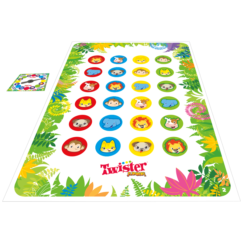 2 GAMES IN 1: This Twister Junior game doubles the fun with a 2-sided mat and reversible spinner board. Play the Animal Safari game on one side and the Animal Party game on the other