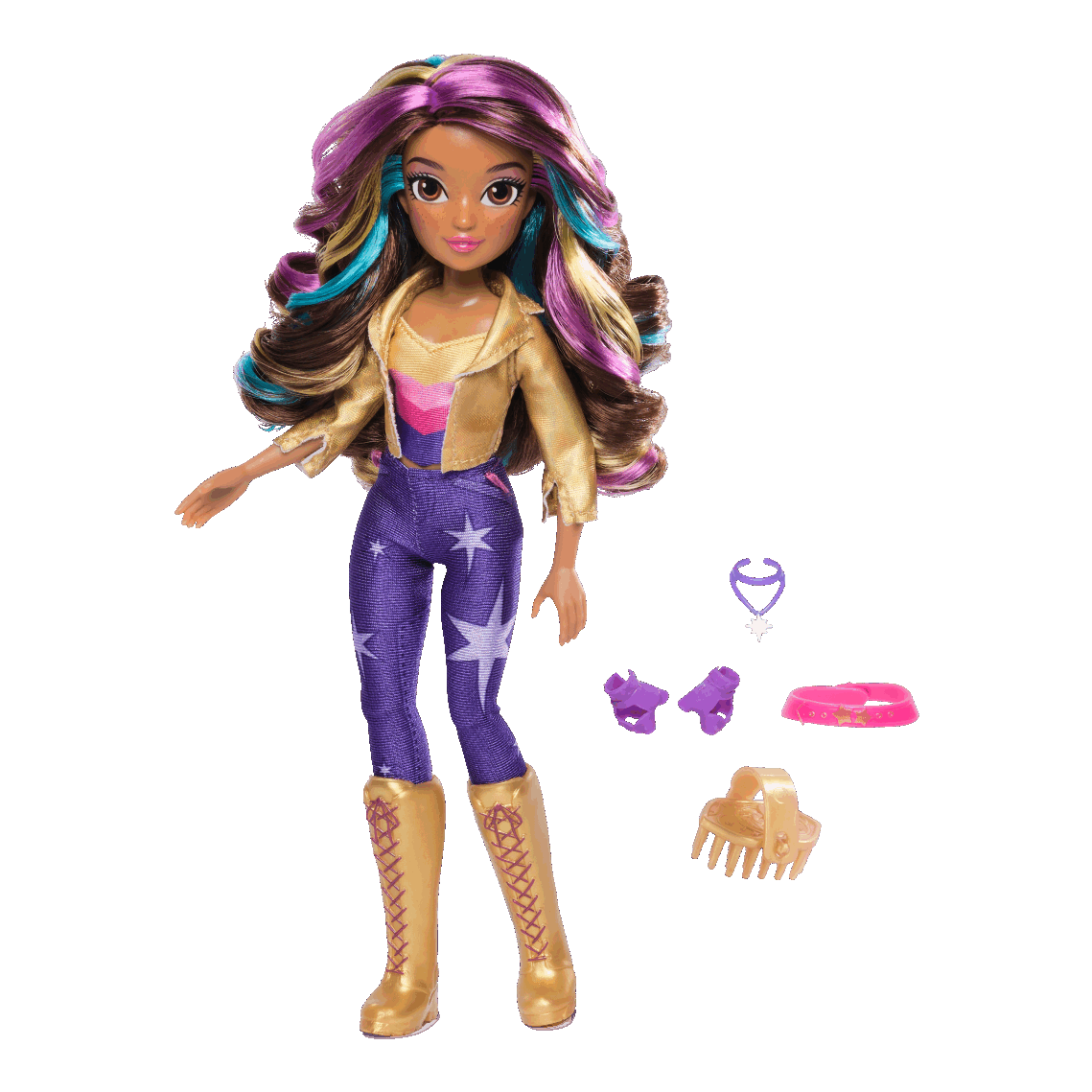 Beautifully detailed from head to toe, Sophia’s rebellious and adventurous personality comes through in her brushable rainbow highlighted hair (styling accessory included) and her signature unicorn rider outfit: rainbow top and pants with Light Magic markings, gold jacket, lace up boots, gloves, belt, and necklace doll accessories! With 9 points of articulation, pose Sophia as you protect Unicorn Island and its magic, and ride into adventure with her unicorn, Rainbow Light-up Wildstar (sold separately)!