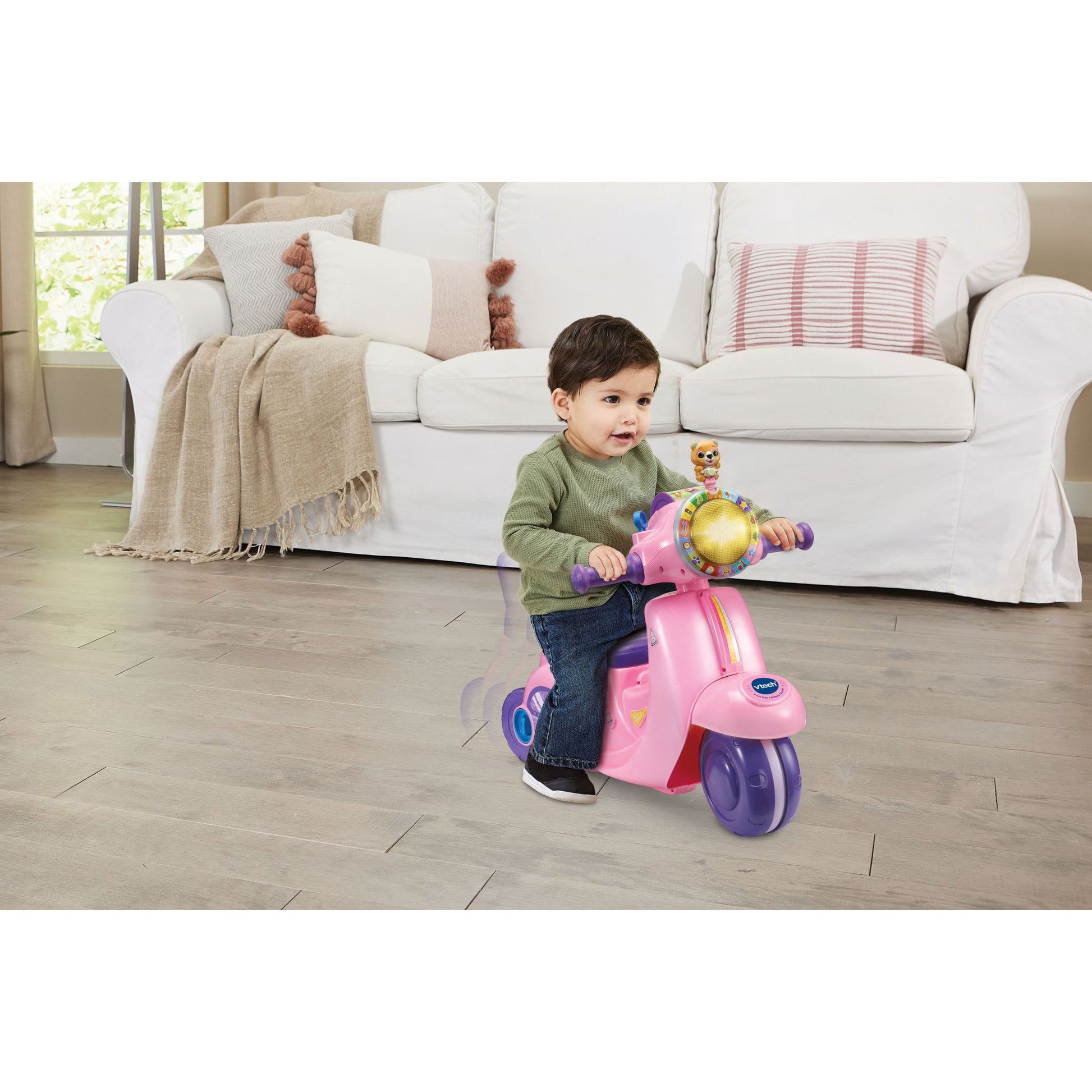 Hop on, let's explore!Starting as a 3-wheeled trike and then converting into a balance bike, the 2-in-1 Ride & Balance Scooter by VTech® grows with your child.