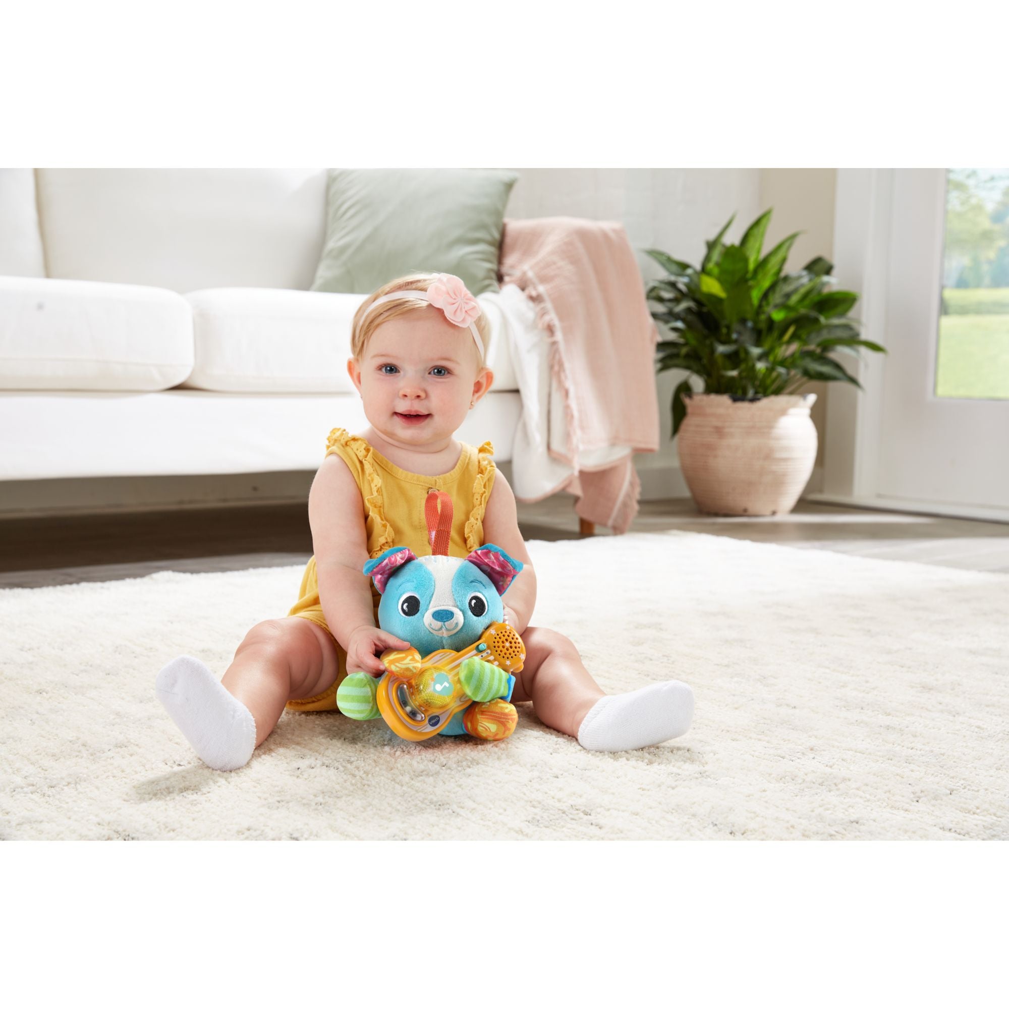 Enjoy discovering music with the adorable Puppy Sounds Guitar by VTech®! Press the chunky, light up guitar button to trigger three different styles of music, classical, country and jazz & to see your puppy friend play the guitar!