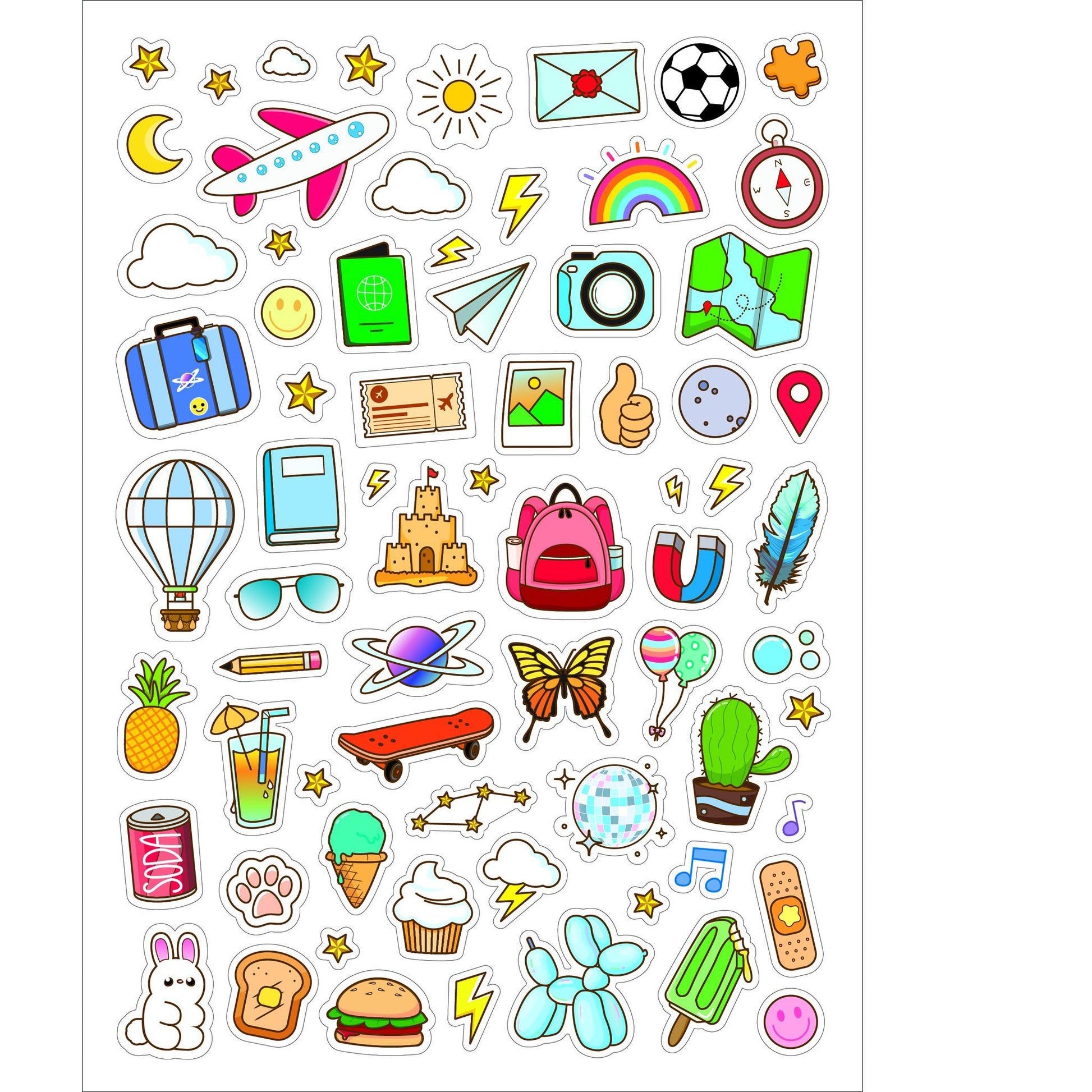 Bundle includes 60+ stickers, a notebook, pen and 2 rolls of thermal sticker paper.
