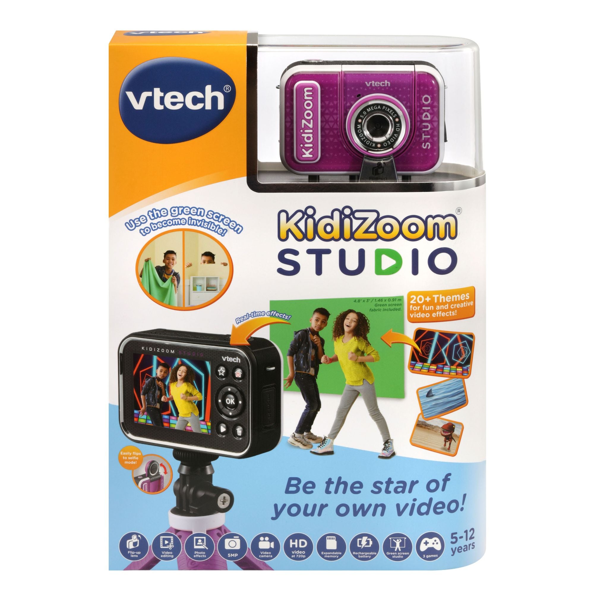 Be the star of your own video universe with the Kidizoom Studio by VTech! Complete with green screen to create special effects, this high-definition video camera kit comes with everything you need to create the show of your dreams. Set up the included tripod to film your very own unboxing videos or use the flip-up lens and handle to capture the perfect on- the -move selfie video. Pretend to host a show, give tours, create disappearing illusions and trick shots, or shoot how-to videos.