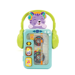 This on-the-go, retro music player style toy with carry handle earphones is a great way to introduce your little one to music! With 3 built-in sing-along songs and 18 great melodies covering country, jazz and classical music styles, there's lots of listening fun to enjoy! Watch as Kitty bops up and down and side to side, as you interact with the music player. The tape will spin and the colourful beads will pop! Encourages the development of motor skills and an awareness of cause & effect relationships.