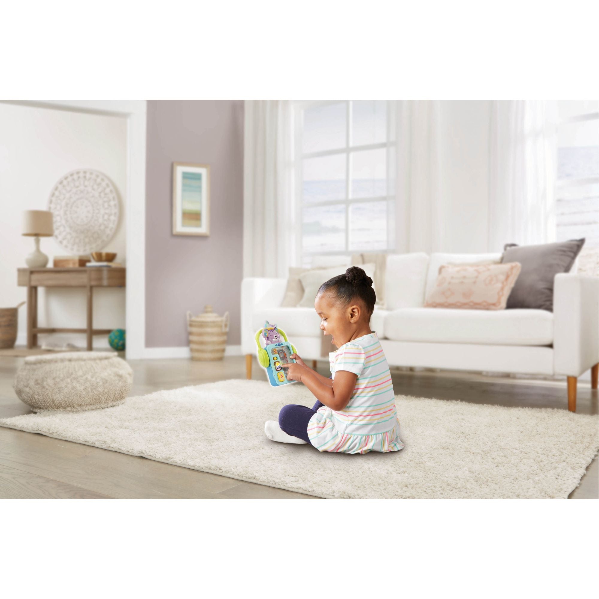On-the-go, retro music player style toy with carry handle earphones is a great way to introduce your little one to music