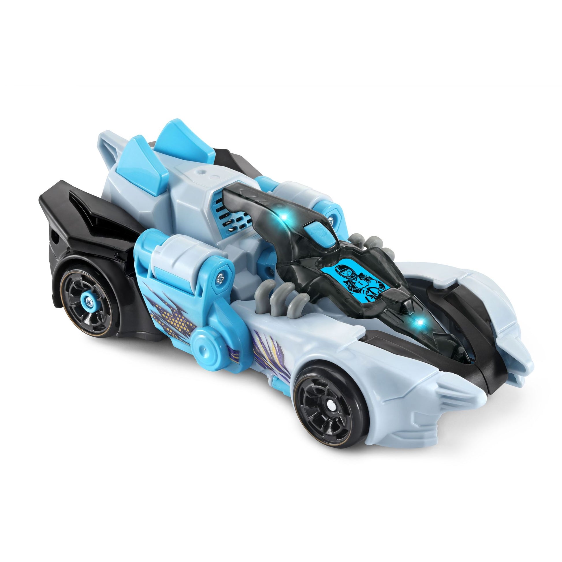 See cool dino eye and driver animations on the backlit LCD screen! When in Dino Mode, press the action button to see Talon flag his wings and bob his head! Talon's mouth even opens and projects lights! Are you ready for some awesome switching action? Let's Switch & Go!