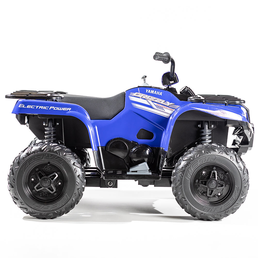 The Yamaha Grizzly Battery-Powered Ride-On features a Blue body, rugged MegaTredz tires and realistic cargo racks.