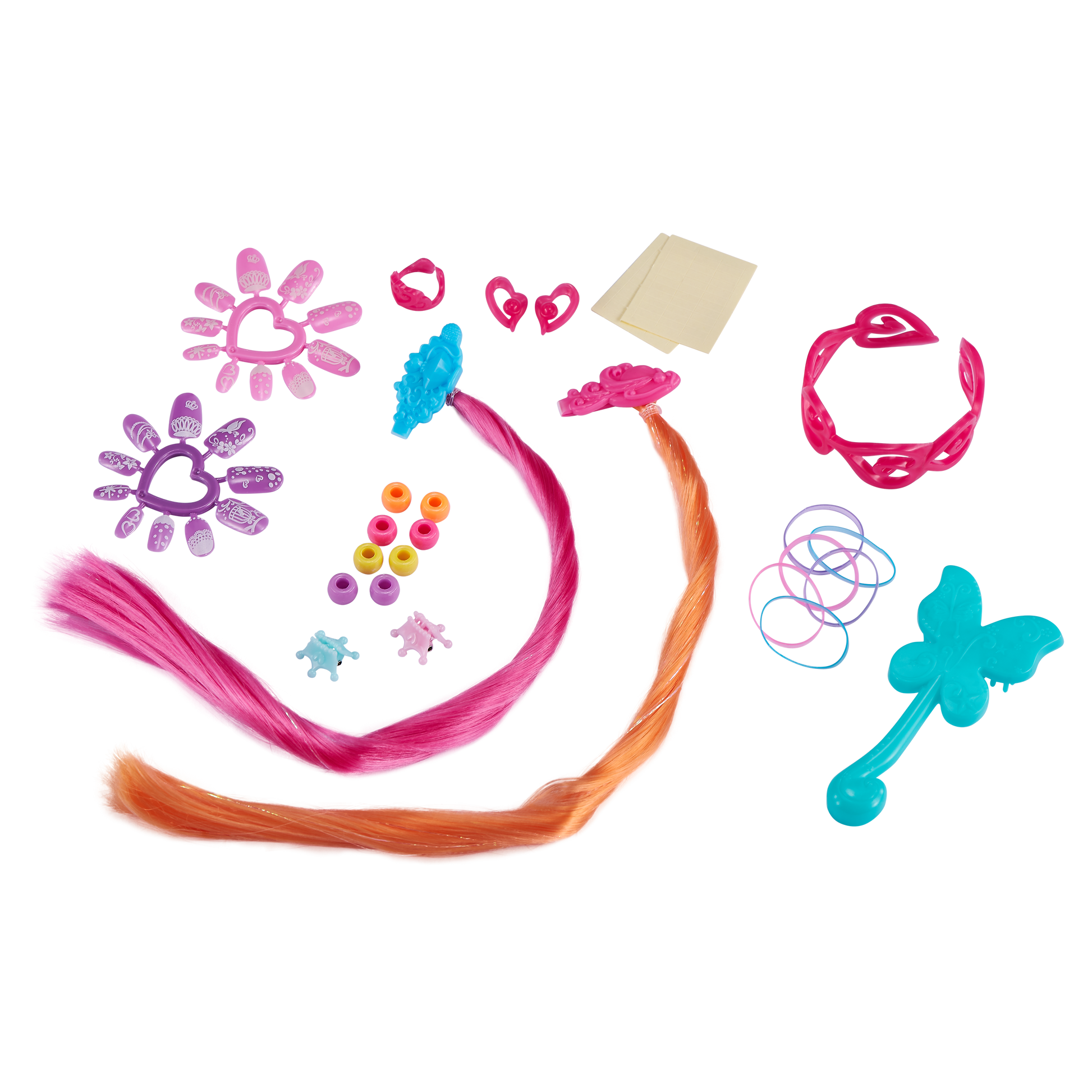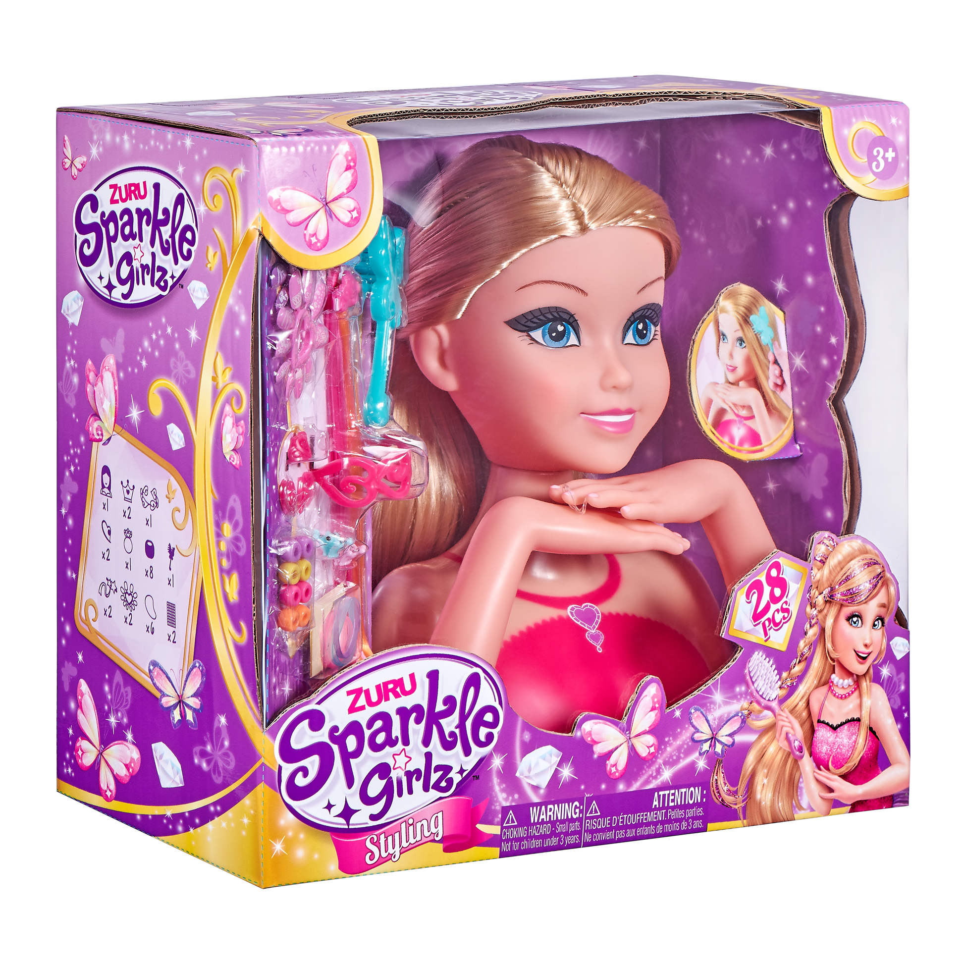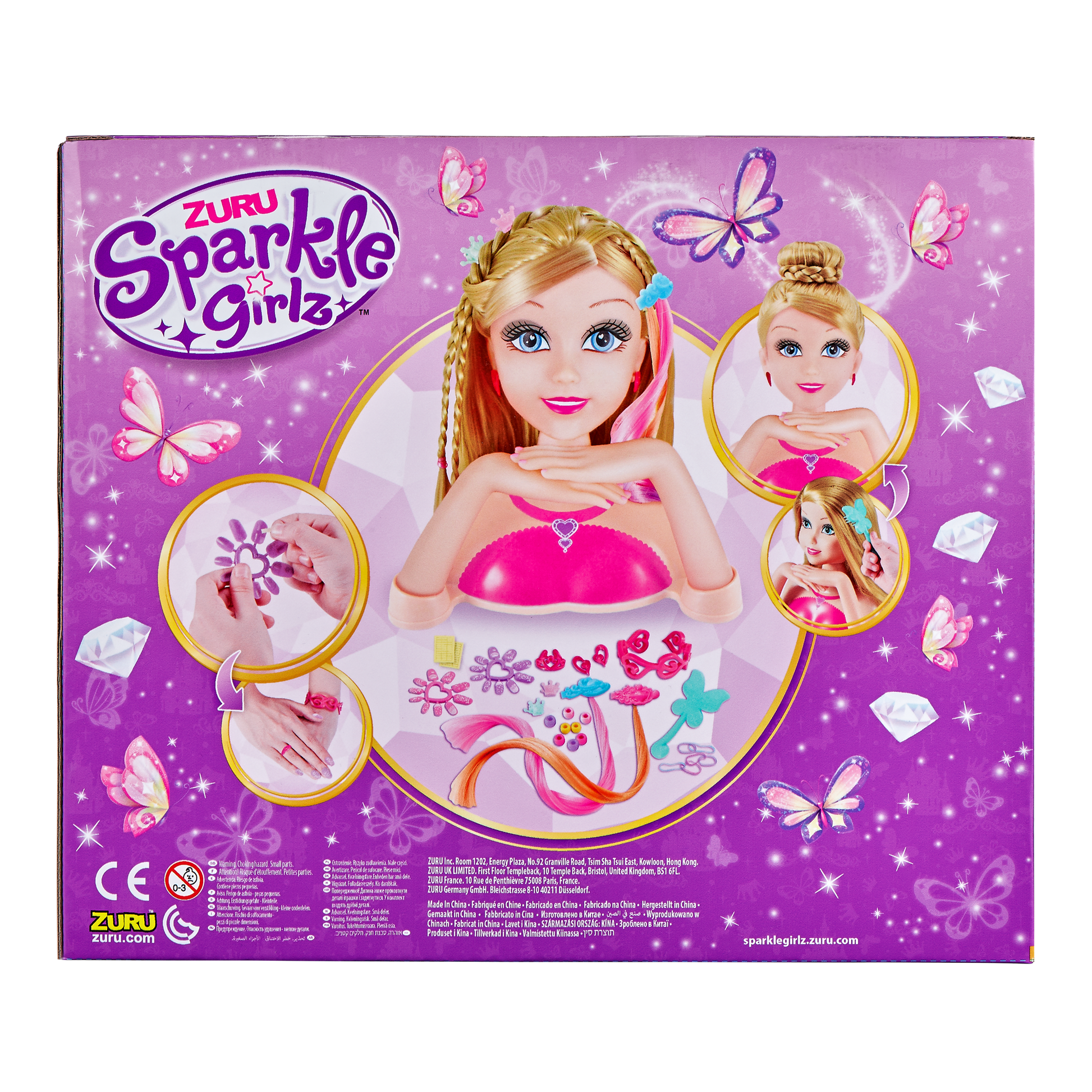 ZURU Sparkle Girlz Nail Design Styling head includes a beautiful princess styling head for you to play with her beautiful soft hair. You can brush her hair with her majestic brush and decorate with colorful hair highlight accessories. Take time to braid colorful beads through her hair and tie with rubber bands at the ends. Decorate her nails and yours too! Set also includes jewelry like bracelet and ring that you can wear and share. Practice styling on her head then practice on your friends! Endless hours of sparkle styling fun! Sparkle every day at an amazing value too! 3+