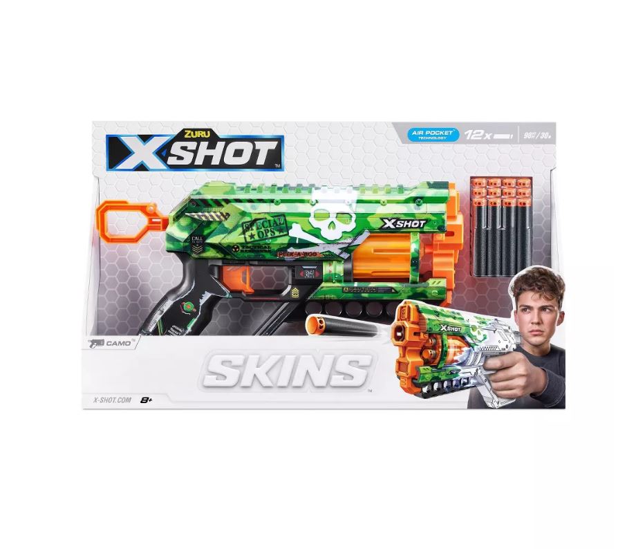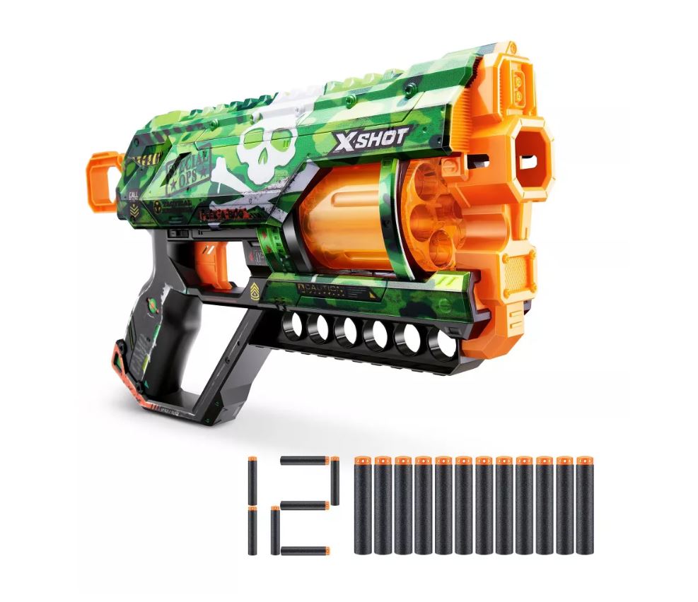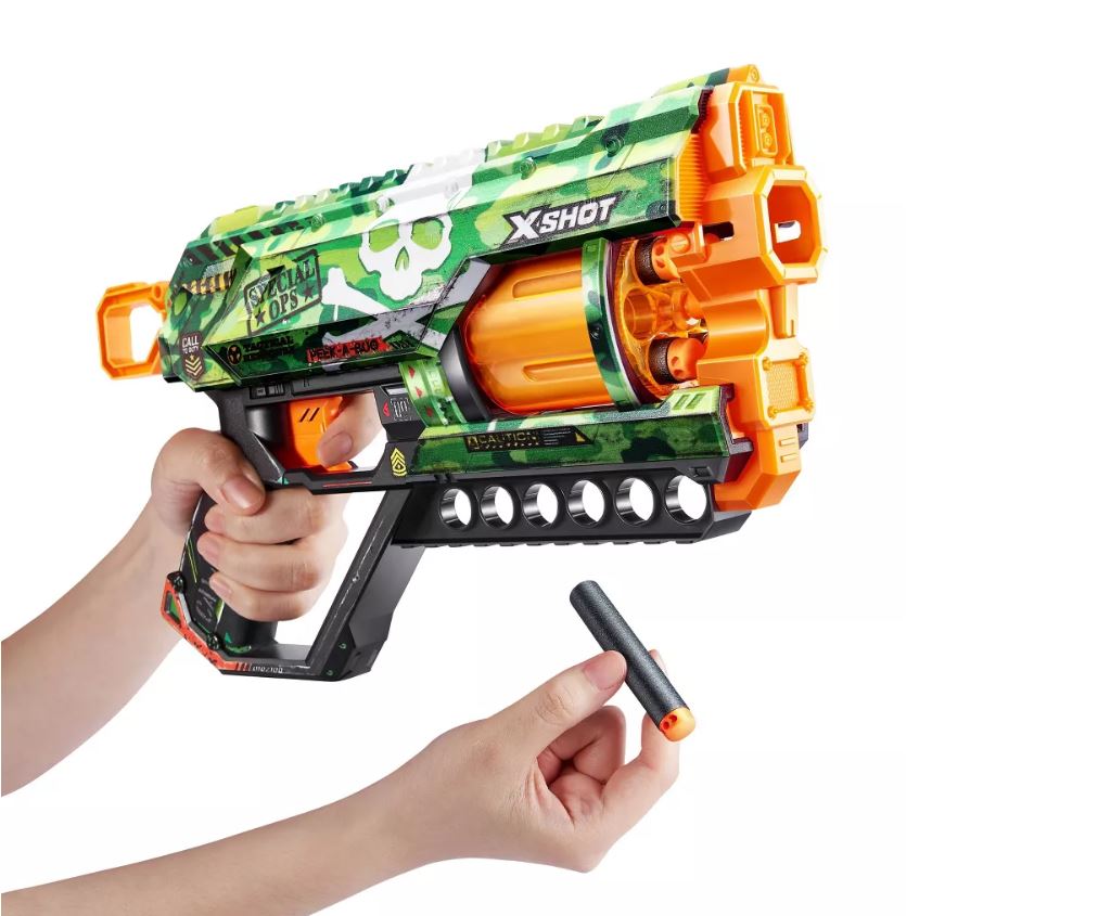 X-Shot Skins brings the in-game experience of skinning your blaster into the real world, choose your Skin and join the battle. The X-Shot Skins Griefer packs enough power to take on targets 27m / 90 feet away!